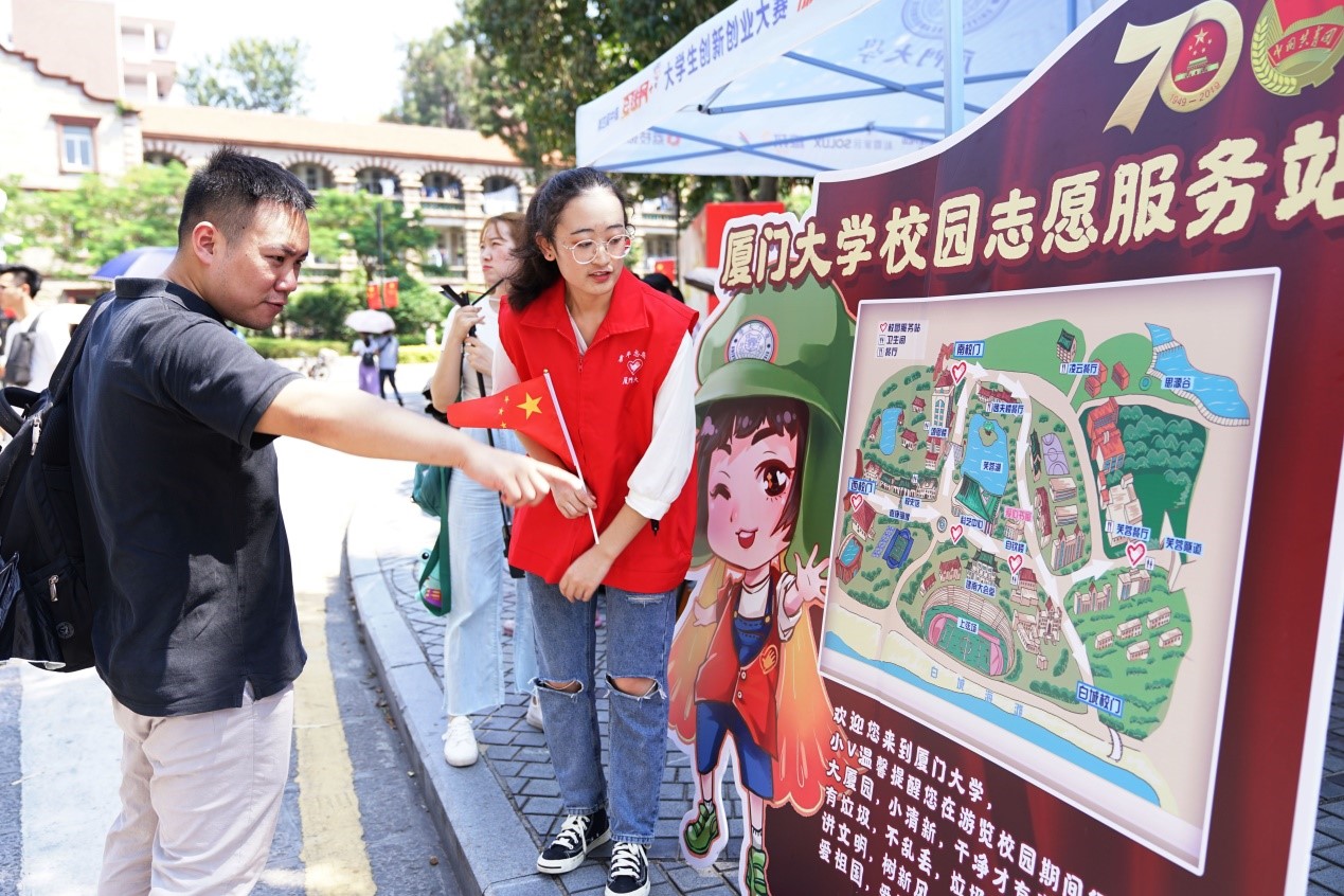 “厦庇五洲客,门纳万顷涛”。来自五湖四海的新老朋友们相聚在鹭岛,来到厦大,共同为祖国70华诞庆生,数百厦大志愿者坚守岗位提供贴心服务,他们以实际行动诠释新时代青年担当。自强不息,止于至善,厦大志愿者一直在路上!