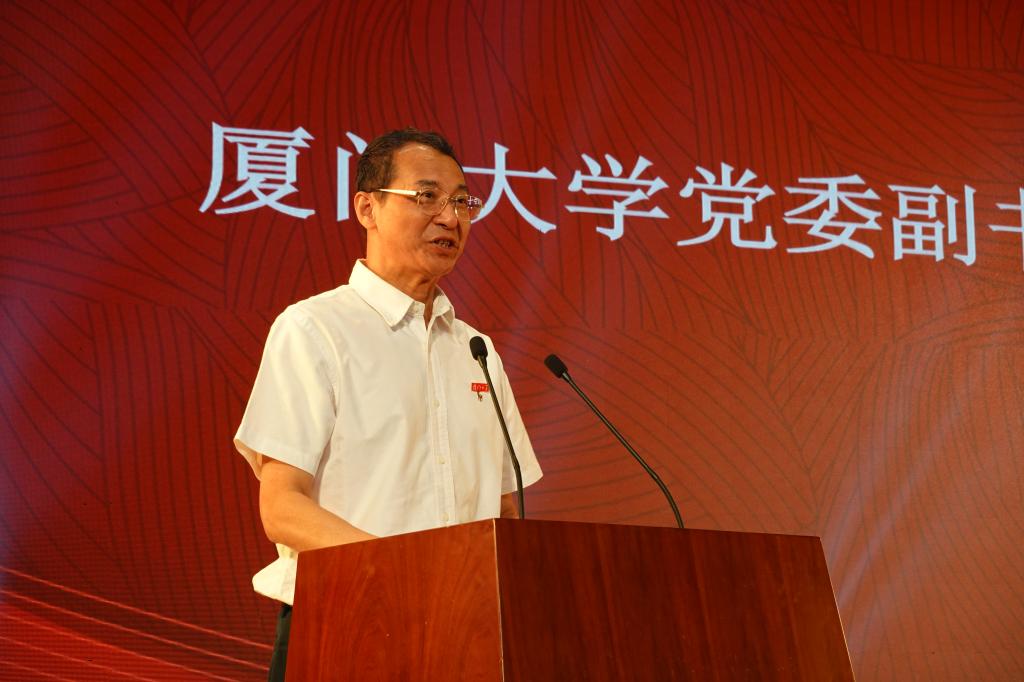 9月26日,由共青团福建省委、福建省学生联合会主办,福建省学校青年工作研究会、共青团厦门大学委员会承办的“我和我的祖国”庆祝新中国成立70周年系列活动暨福建省“向上向善•青马之光”领航工程高校优秀青年典型事迹宣讲活动,于科学艺术中心报告厅举行。厦门市临家餐饮投资有限公司董事长邱尚振、共青团福建省委副书记陈志勇、厦门大学党委副书记赖虹凯,以及来自厦门市临家餐饮集团、团省委、我校各相关部门的负责人,我校“向上向善”奖教学金获得者代表、及各院师生代表等参加此次活动。