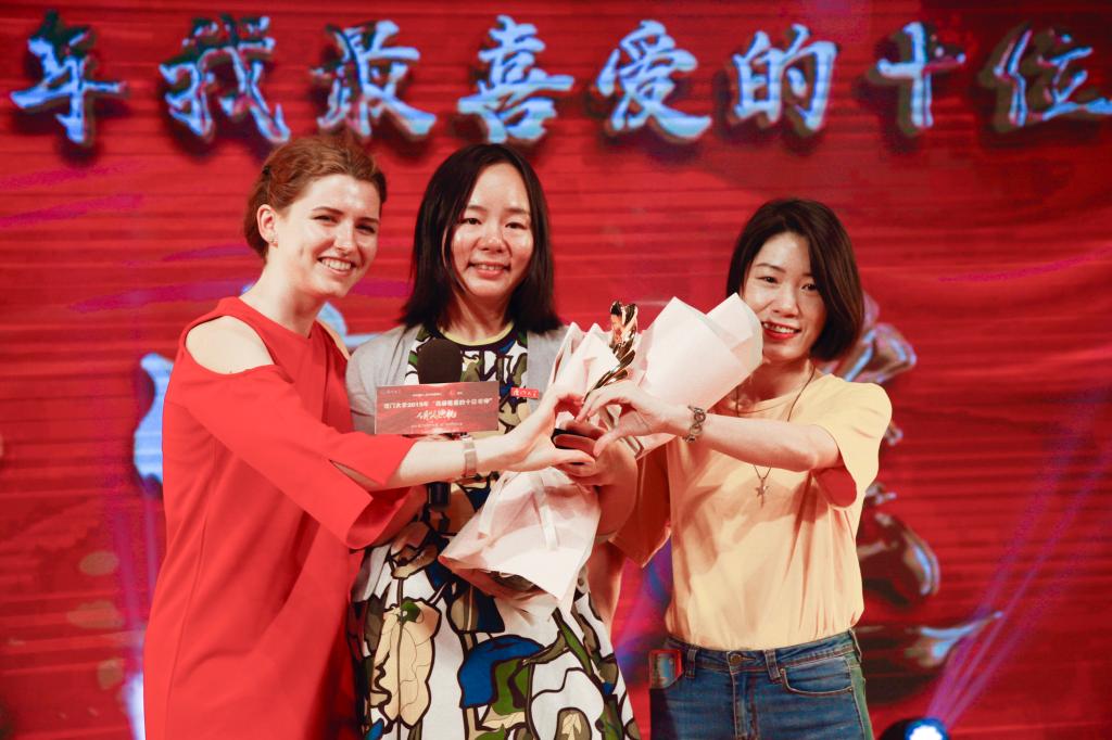 颁奖环节中,各院学生代表上台向老师们敬献奖杯和鲜花,表达对老师们多年来辛苦付出的感谢。各位老师也从不同方面分享了他们从教生涯中的点点滴滴。其中一位老师所说:“要以这次的评选活动为契机,以评促学,以评促教,促进厦门大学‘双一流’教学工作的继续开展!”