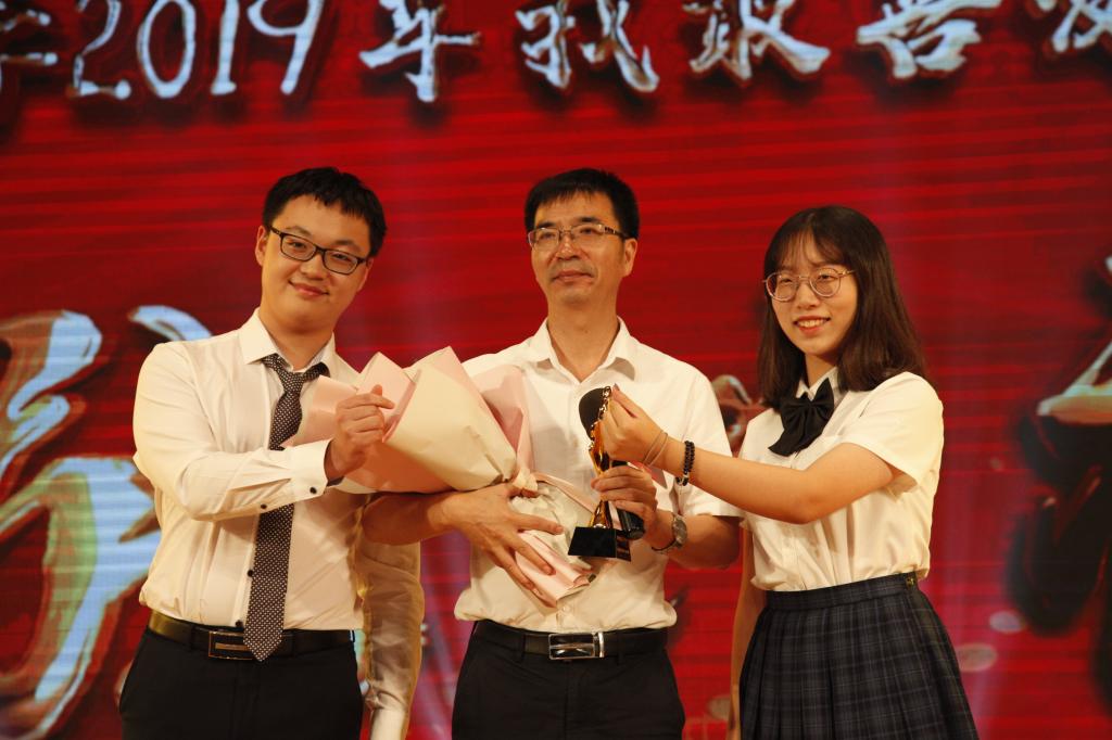 在中华人民共和国成立70周年之际,颁奖仪式的最后,全场师生起立,同唱《我和我的祖国》,现场红旗舞动,激情澎湃。