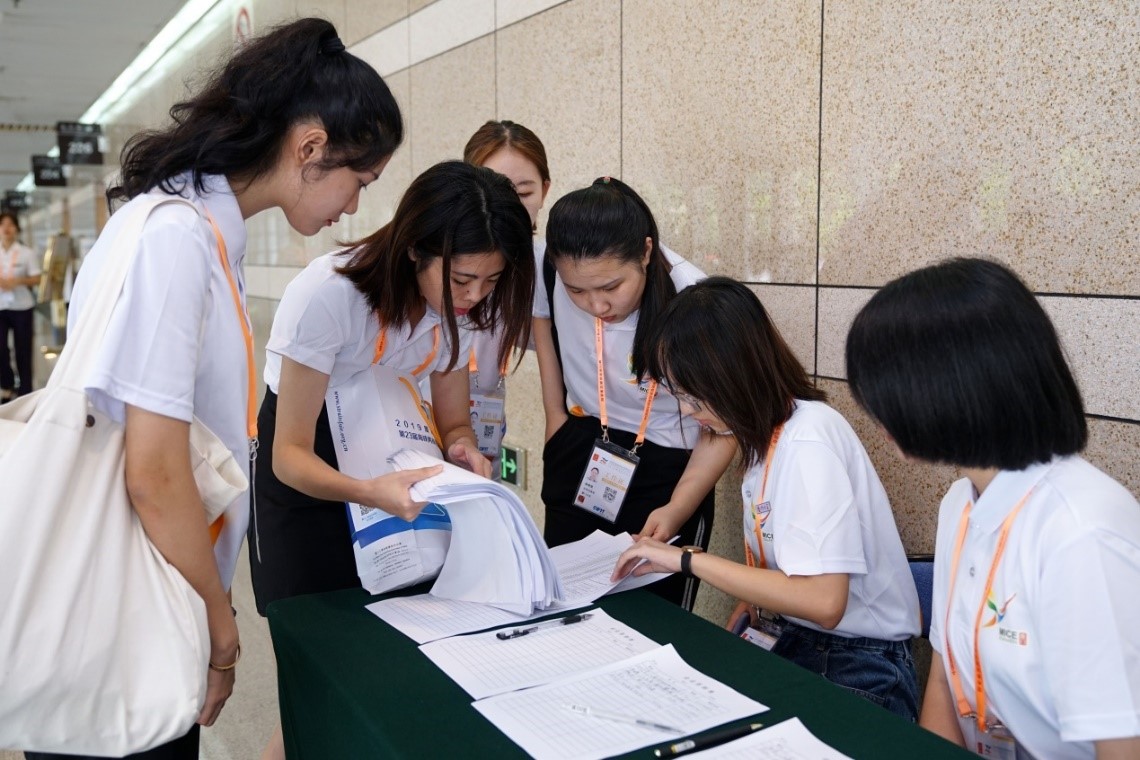 来自管理学院的2017级本科生郑少卿是本次志愿者的领队,对志愿者进行岗位调配是她的一大职责。她表示,这项工作并不是表面看上去那样简单,岗位需求与志愿者的专业特长、工作经验、上岗时间以及男女比例都是需要考虑的重要因素,在这期间也经常要处理突发情况。她说:“在这段期间我的沟通能力和应变能力大大提高了。虽然工作有些劳累,但一想到能使志愿者们更好地为投洽会服务,为大会的顺利开展贡献出自己的力量,学有所用,用有所获,内心便安慰了许多。除了志愿者配岗工作,我还负责办公室日常事务和会议晚宴跟进等工作,这些工作让我的生活更加充实,我也乐在其中,收获颇丰。”她还提到,参与本次投洽会志愿活动还给了她另一个大收获——结识了许多志同道合、幽默风趣的志愿者同伴。能够与他们并肩作战,感到十分荣幸又庆幸。