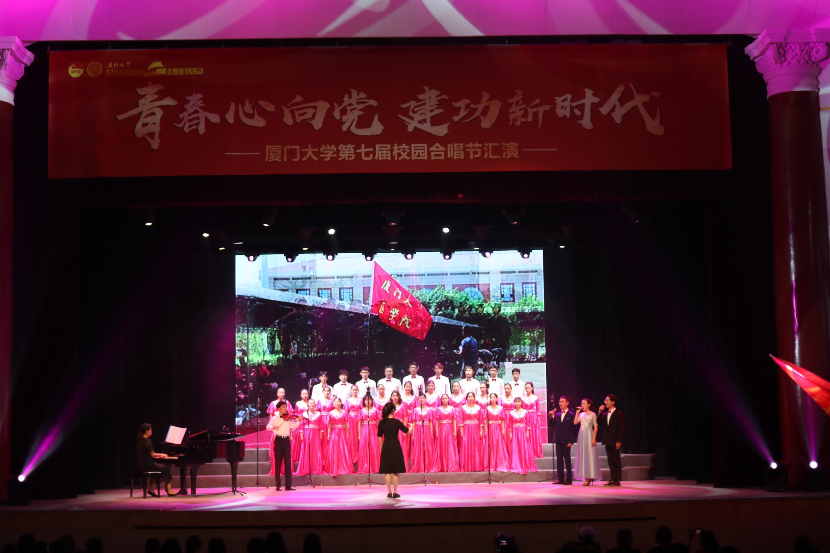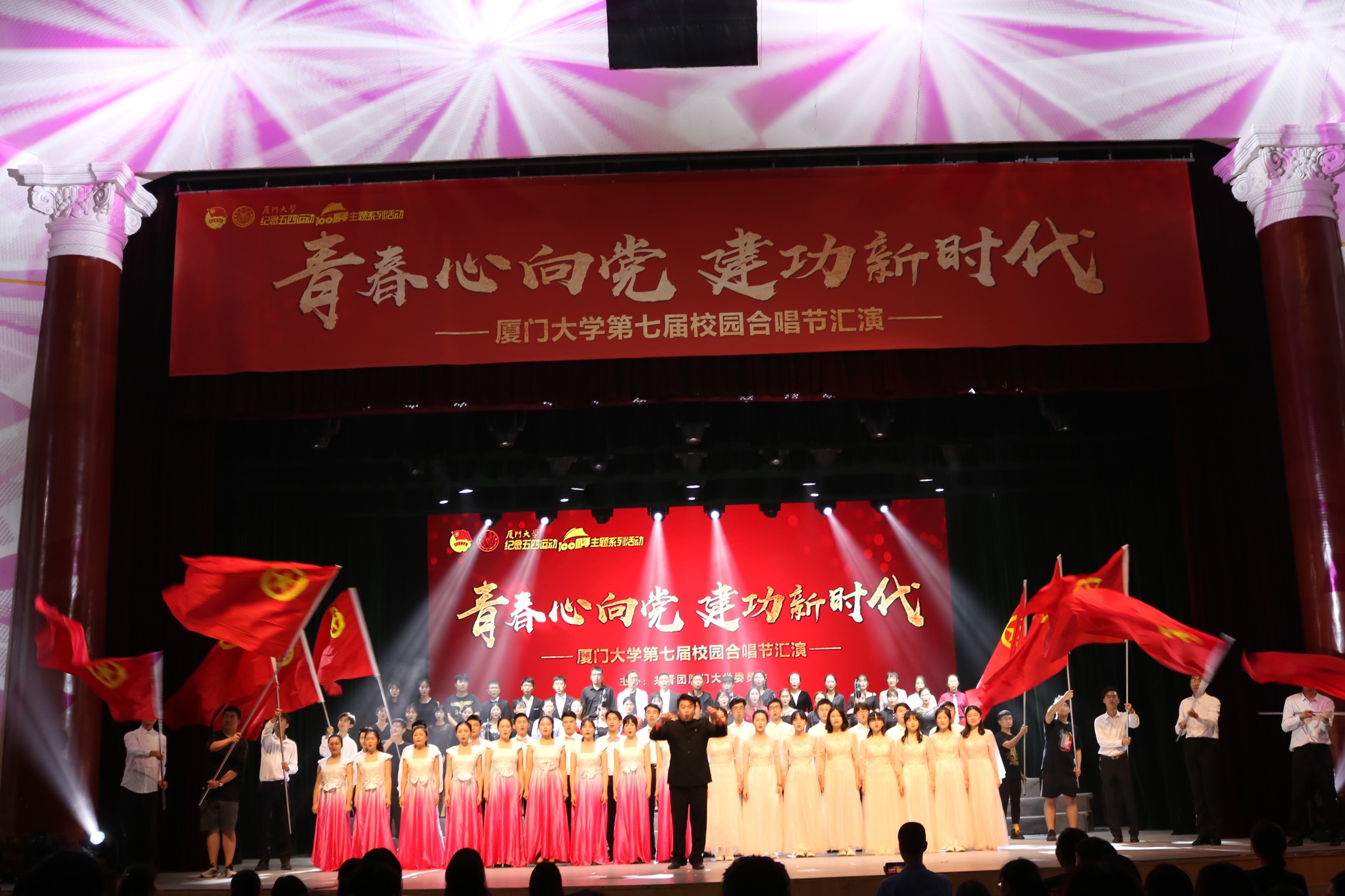 今年是中华人民共和国成立70周年、五四运动100周年。校园合唱节作为“青春心向党,建功新时代”厦门大学纪念五四运动一百周系列活动之一,旨在认真学习贯彻习近平总书记在纪念五四运动一百周年大会上的重要讲话精神,激励新时代青年牢记五四历史,传承五四精神,营造和谐、健康的校园文化氛围,唱响青春中国梦。