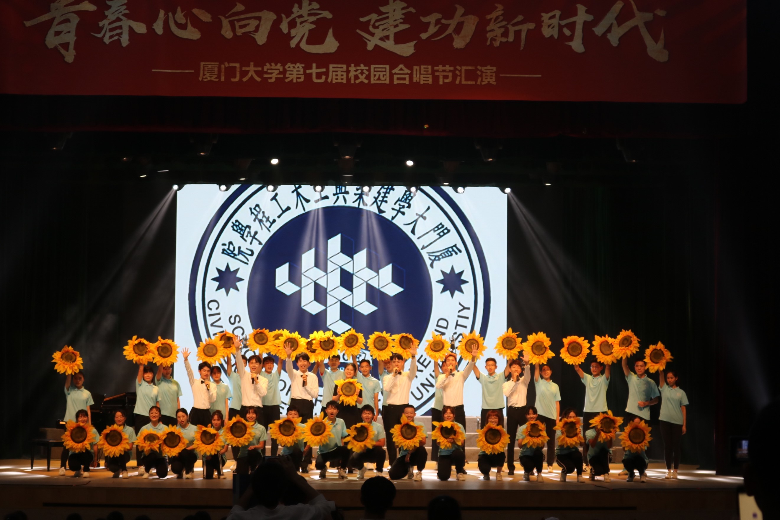 回望五四,救亡口号响彻中华大地;还看今朝,时代旋律唱响青春校园。2019年5月19日,由共青团厦门大学委员会主办,厦门大学学生艺术团承办的“青春心向党,建功新时代”厦门大学第七届合唱节落下帷幕。活动于2018年3月启动,共有26个学院,千余名同学参与到活动中来。各学院分别于5月8日至5月13日在思明校区芙蓉湖圆形广场及翔安校区学生活动中心进行展演,并于5月19日在建南大会堂进行汇演,为到场的老师同学带来了一场视听盛宴。在建南的舞台上,各个合唱团演唱了歌唱伟大祖国,充满青春朝气的歌曲,用合唱的形式展现青春风采,共书时代华章。