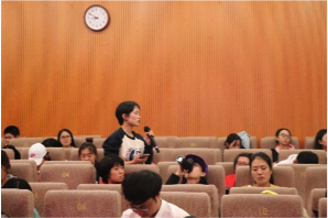 大赛决赛由实践队伍展示及答辩、评委老师提问点评、观众互动提问三个环节组成。在实践队伍展示及答辩环节,来自各个学院的10支优秀实践队伍代表从自身丰富的调研经历出发,围绕“发现问题——深入实践——解决问题”展开成果汇报,在短短四分钟内讲述了他们的实践故事,引来在场所有师生的肯定和赞叹。其中,来自公共事务学院的“砥砺奋晋”实践队在总结上海、浙江、北京三种模式的基础上,深入晋江三村进行实地走访调研,提出了具有普遍借鉴意义的地方政府推动产权制度改革与发展的对策建议,赢得在座评委的一致好评;来自人文学院的情系黔中实践队将自己的脚步踏入祖国最偏远贫困的地区之一——贵州中部地区的岩腊苗族布依族乡,充分考察当地自然环境、人口分布和产业发展状况,与当地村民、干部进行深入访谈和交流,探寻制约当地经济发展的因素,并提出了推动当地脱贫致富的针对性建议。张庆才教授在点评时指出,只有深入到祖国的偏远地区才能够真正看到什么是中国,对他们心系家乡、脚踏实地的实践精神给予高度肯定。除此之外,其他实践队伍还从我国养老事业发展、大众科普、侨房纠纷等与人民生活和祖国发展密切相关的实际问题出发阐述了各具特色的调研经历和解决方案,在座评委老师根据他们的汇报一一提出具有针对性的问题和建议,参赛团队纷纷表示深受启发,获益良多。