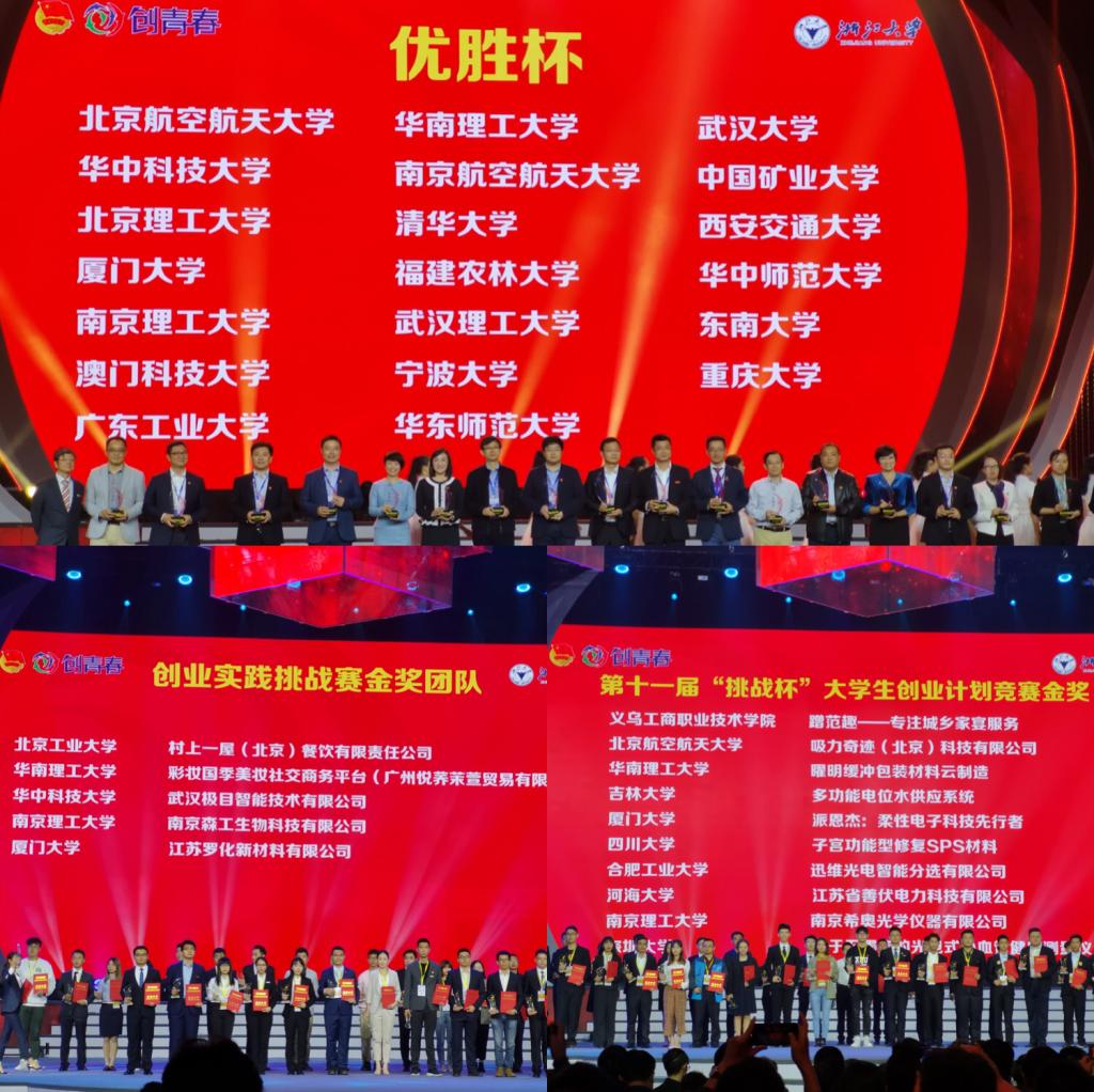 2018年11月1日—3日,由共青团中央、教育部、人力资源和社会保障部、中国科协、全国学联、浙江省人民政府联合主办的2018年“创青春”全国大学生创业大赛决赛在浙江大学举办。经过激烈角逐,我校取得2金3银1铜的优异成绩,总积分位列全国高校第11名、福建省首位,大赛开办以来连续三届捧得大赛“优胜杯”,并获“高校优秀组织奖”。