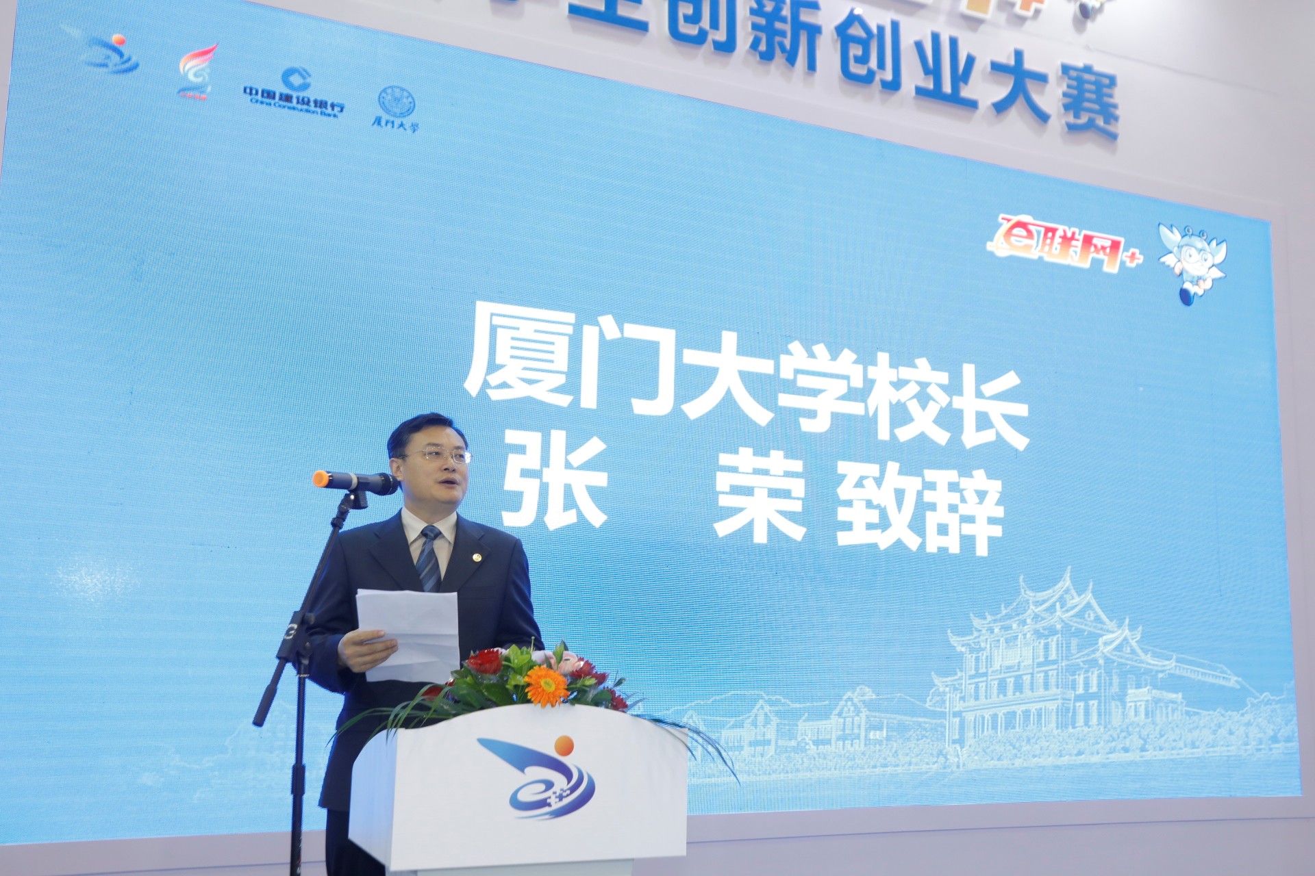张荣介绍了此次优秀项目交流巡展活动,回顾了厦门大学承办第四届中国“互联网+”大学生创新创业大赛以来从筹备到开馆的历程,表明了厦大师生办好大赛的决心,并表达了对赛事圆满完成的期冀。