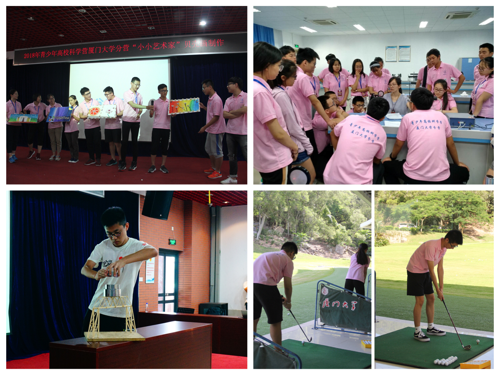 除了学科讲座内容丰富、引人入胜,趣味课堂体验同样异彩纷呈。有别于传统课堂,本次科学营开展的“迷你工程”结构设计、“趣味实验”、高尔夫球课体验、“贝壳画制作”等活动,寓教于乐,鼓励营员们动手动脑,在实践中求知、提升综合素质。