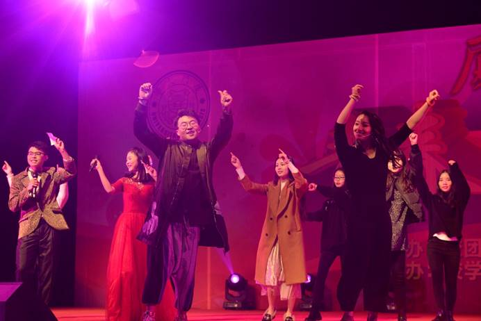 在全体观众和工作人员的集体倒计时中,2018年的钟声敲响,在场的师生共同迈入了崭新的一年,欢呼与祝福之声在人群中散播开来。校长张荣代表校党委、校行政班子发表新年致辞。观众们在欢呼声中彼此击掌,在欢笑中欢聚一堂、辞旧迎新,共同回顾过往岁月,展望未来更加美好的日子。