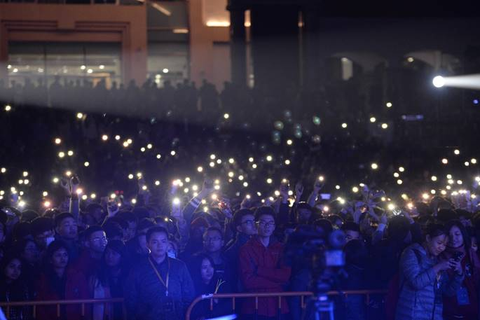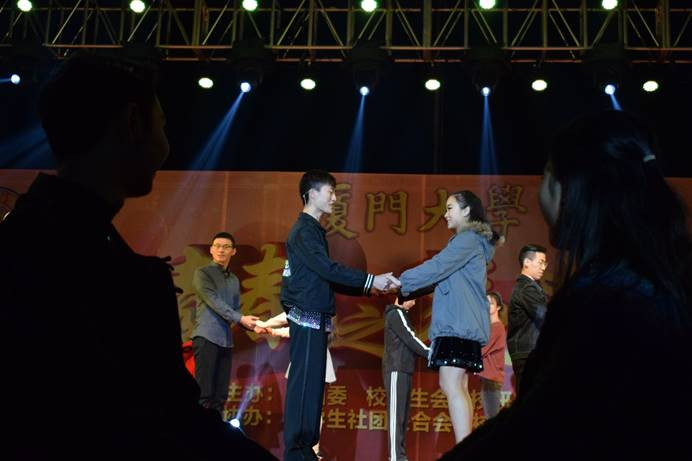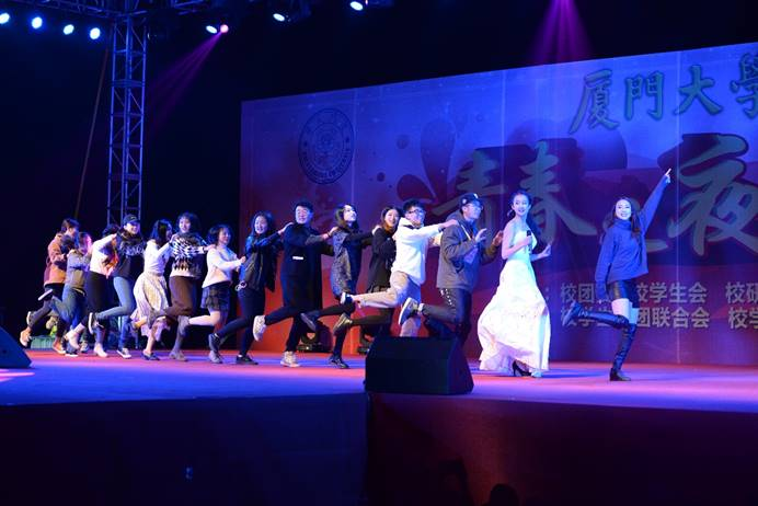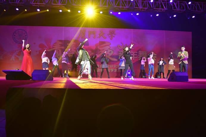 舞会同时穿插有集体舞环节,通过现场教学,带领现场观众参与其中。手势舞、篝火舞、兔子舞等不同形式的舞蹈一次次掀起了现场师生的热情,也拉近了现场观众间的距离,舞动的人群如同一团炽热火焰,温暖着微寒的夜晚。“千人KTV”的环节更是点燃了观众的激情与活力。舞蹈与音乐的交织融合,共同营造了属于厦大人的跨年狂欢夜。