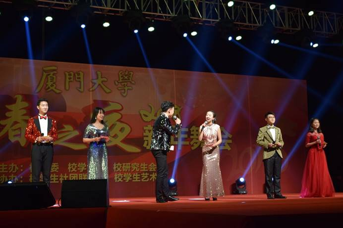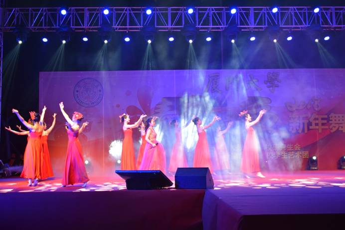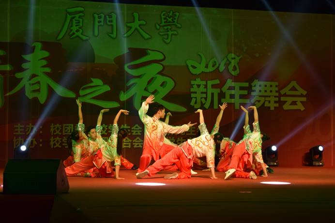 晚会分为“初心”“、“追梦”、“锦时”、“回盼”和“你好,2018”五个篇章。乐队、舞蹈队、武术队等演出队伍纷纷登台表演,现场激情洋溢,氛围高涨。老师们的精彩表演也为晚会增色不少,观众欢呼声不绝于耳。舞会精彩纷呈,这不仅是一场才艺的盛宴,更是一次厦大师生热爱生活、昂扬进取精神风貌的展示。