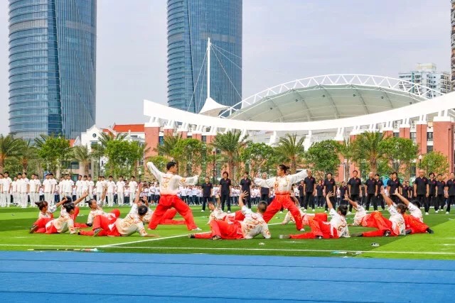 颁奖过后,张彦隆重宣布本届田径运动会开幕。随后进行的开幕式表演中,参加健身气功表演和武术表演的学生以意气风发的精神面貌,赢得了在场师生们的一阵阵喝彩;伴随青春激昂的旋律,千袭白衣在阳光下舞动,大型体适能展演中千人平板支撑整齐而有力量的动作给人予强烈的视觉震撼;参与健美操表演的同学们凭借他们精妙而又整齐的动作、推陈出新的舞蹈设计收获了在场师生的热烈掌声。他们的表演展现了厦大人坚守中华优秀传统的同时紧跟时代潮流的精神品质。