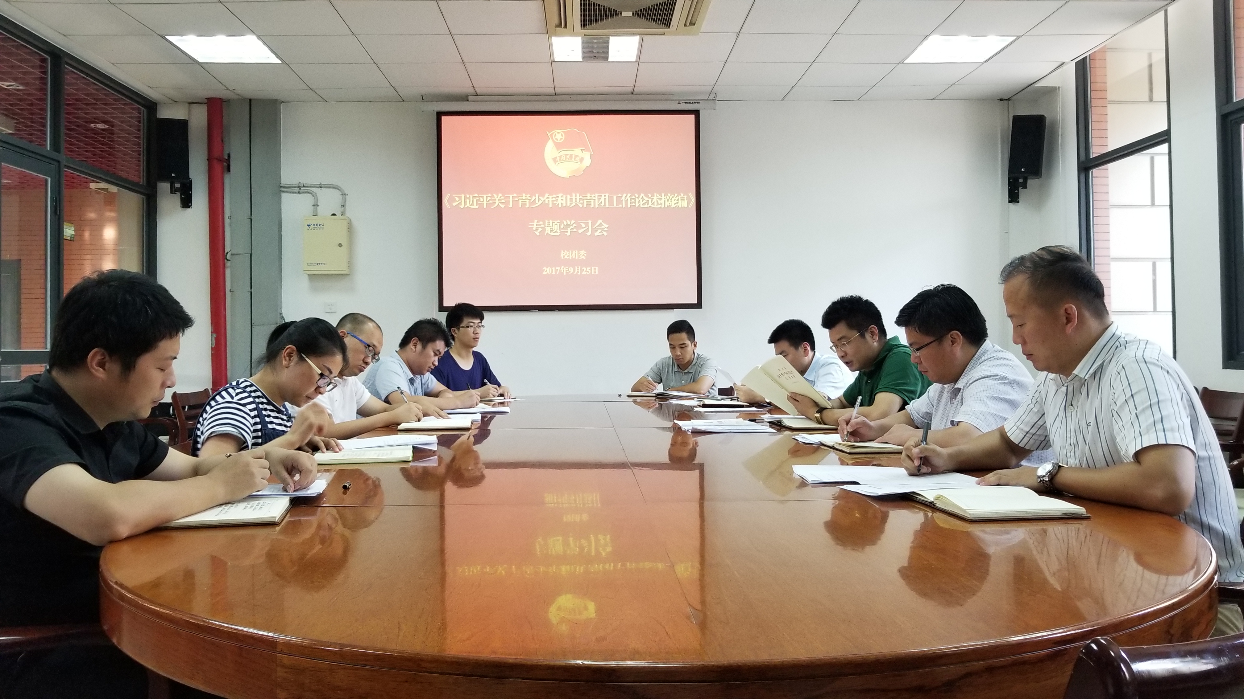 9月25日,校团委党支部在自钦楼会议室组织开展政治理论学习会,校团委全体党员参加会议。