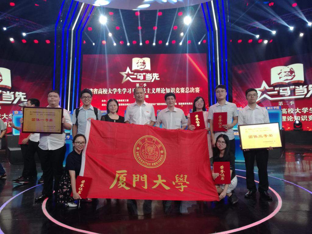 9月23日,由中共福建省委教育工委主办,福建省高校思想政治理论课教学指导委员会、福建省广播影视集团东南卫视和福建教育电视台承办的第二季福建省高校大学生学习马克思主义理论“一‘马’当先”知识竞赛总决赛在福州落下帷幕。我校荣获研究生组团体一等奖、本科生组团体三等奖,马克思主义学院研究生唐冬梅、管理学院研究生余洋获研究生组个人二等奖,信息科学与技术学院研究生林艳彬、药学院研究生尚策荣获研究生组个人三等奖,物理科学与技术学院本科生朱星宏、人文学院本科生钱天昊荣获本科组个人优胜奖。校党委副书记林东伟看望参赛师生并观摩了总决赛。