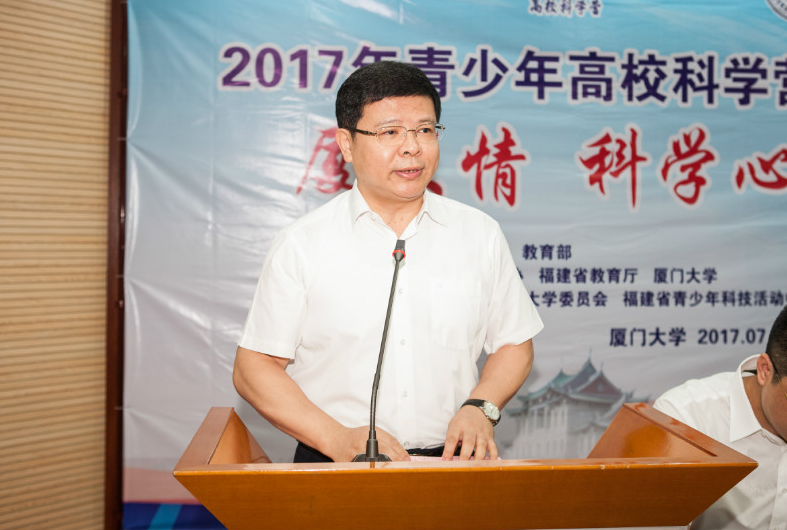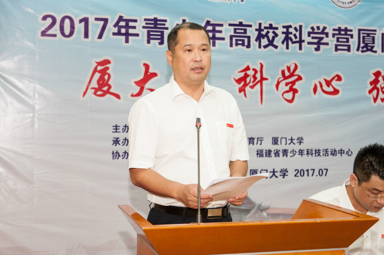 7月14日,由中国科协、教育部主办,中国科学院支持,福建省科协、福建省教育厅和厦门大学承办的2017年青少年高校科学营厦门大学分营开营。福建省科学技术协会党组成员、副主席林学理,厦门大学党委副书记林东伟等领导和嘉宾出席了开营仪式。来自福建、湖南、江苏、浙江、云南、安徽、河南以及江西的近200名优秀在校高中生和带队教师参加了开营仪式。仪式由厦门大学团委书记陈怀锋主持。