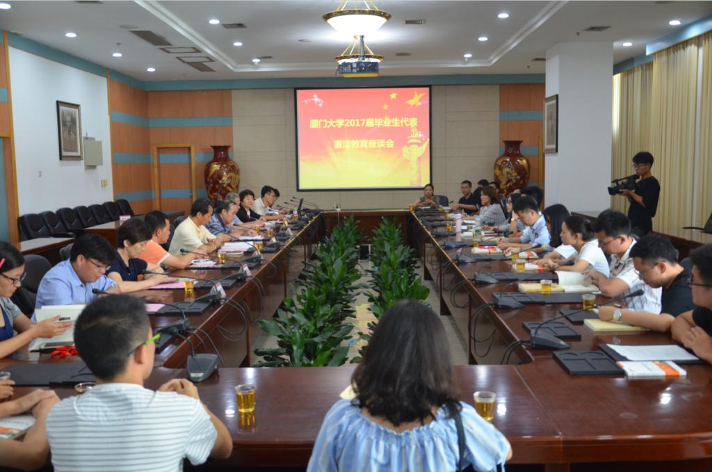 6月12日下午,学校在颂恩楼215会议室举行2017届应届毕业生代表廉洁教育座谈会。利用临近毕业重要节点,将廉洁教育课作为毕业生离校前的最后一课,让毕业生认清腐败的危害,走好人生社会的第一步。校党委副书记、纪委书记赖虹凯出席,校纪委、组织部、宣传部、学生处、监察处、校团委负责人以及即将奔赴基层的应届毕业生代表参与座谈会。校纪委副书记林金枝主持座谈会。
