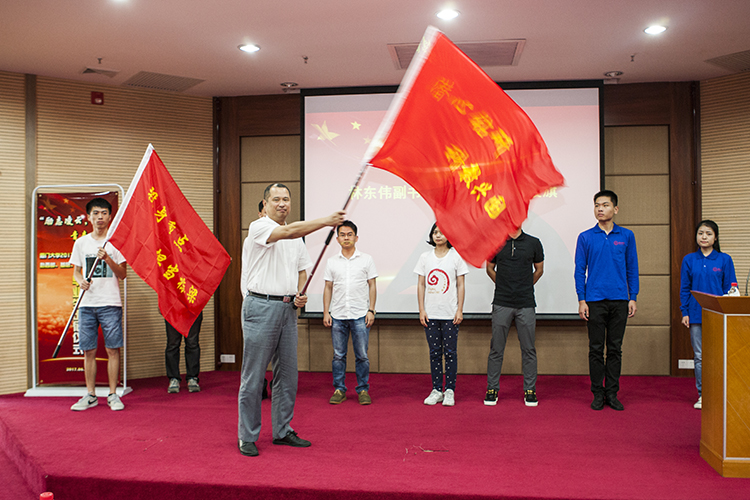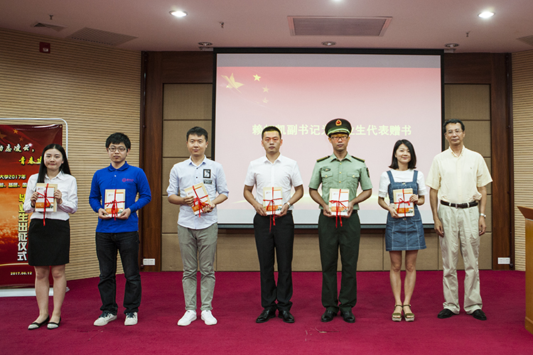 随后,林东伟为即将奔赴基层、西部、部队、国家重要行业、科研院校就业,投身自主创业和参加研究生支教团的毕业生代表授予出征旗帜。赖虹凯向毕业生代表赠送了我校编纂的书籍《天南地北厦大人》和《创新创业厦大人》,共同勉励毕业生们牢记厦大人的光荣使命,在今后的工作岗位上不忘初心,锐意进取,开拓创新。
