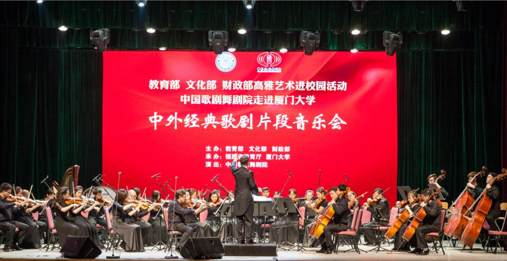 4月14日晚7点半,由教育部、文化部、财政部联合举办,福建省教育厅和厦门大学承办的中外经典歌剧片段音乐会在厦门大学建南大礼堂顺利举行。本场音乐会为建校96周年系列活动之一,也是高雅艺术进校园厦门站第四场,由中国歌剧舞剧院交响乐团和歌唱艺术家带来视听的饕餮盛宴,音乐会采用互动的形式,团长担任讲解人作为沟通桥梁,到场师生积极参与互动,合鸣出厦园的浪漫情怀。学校领导及相关单位负责人与师生校友共同观看演出。