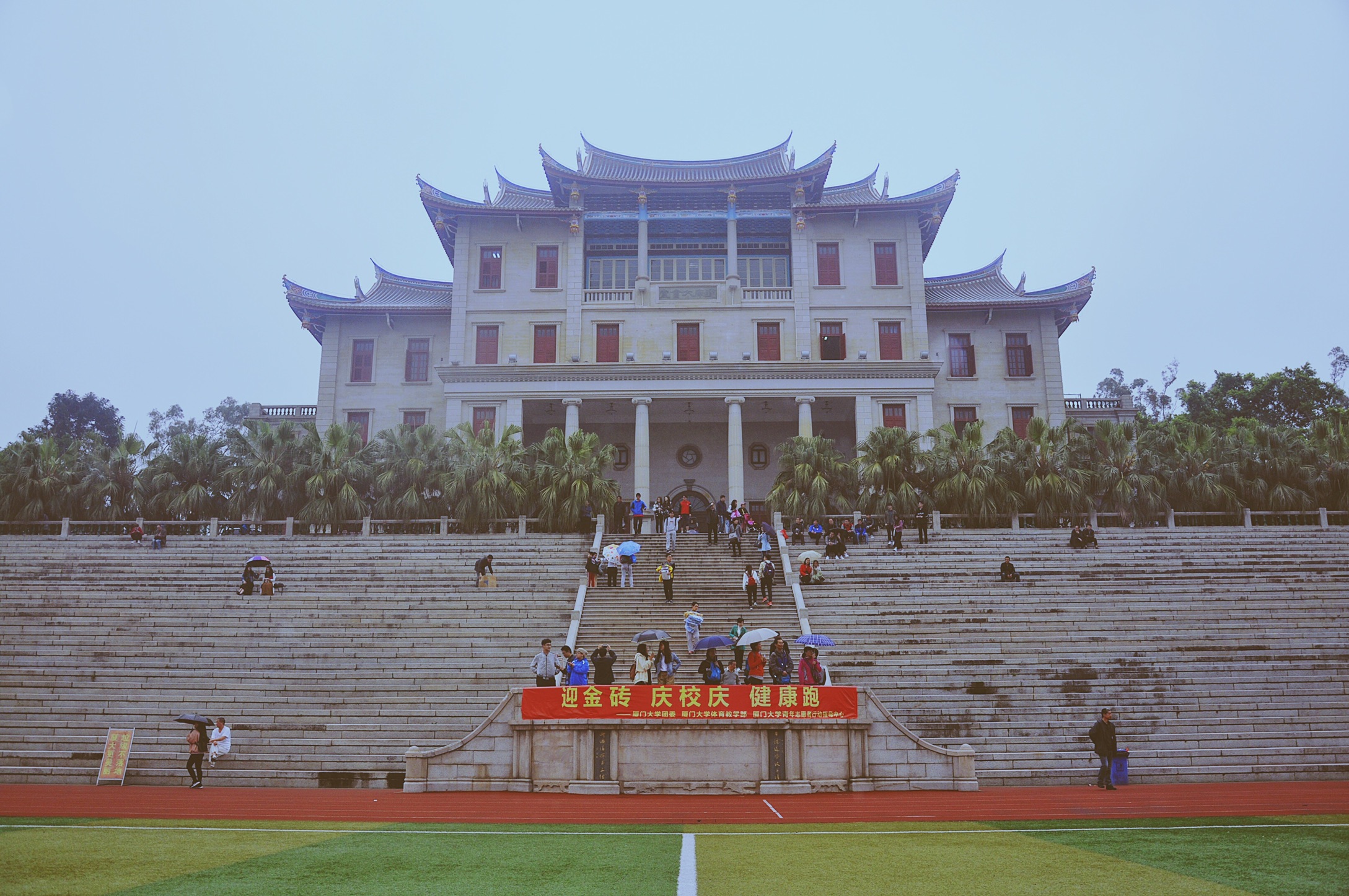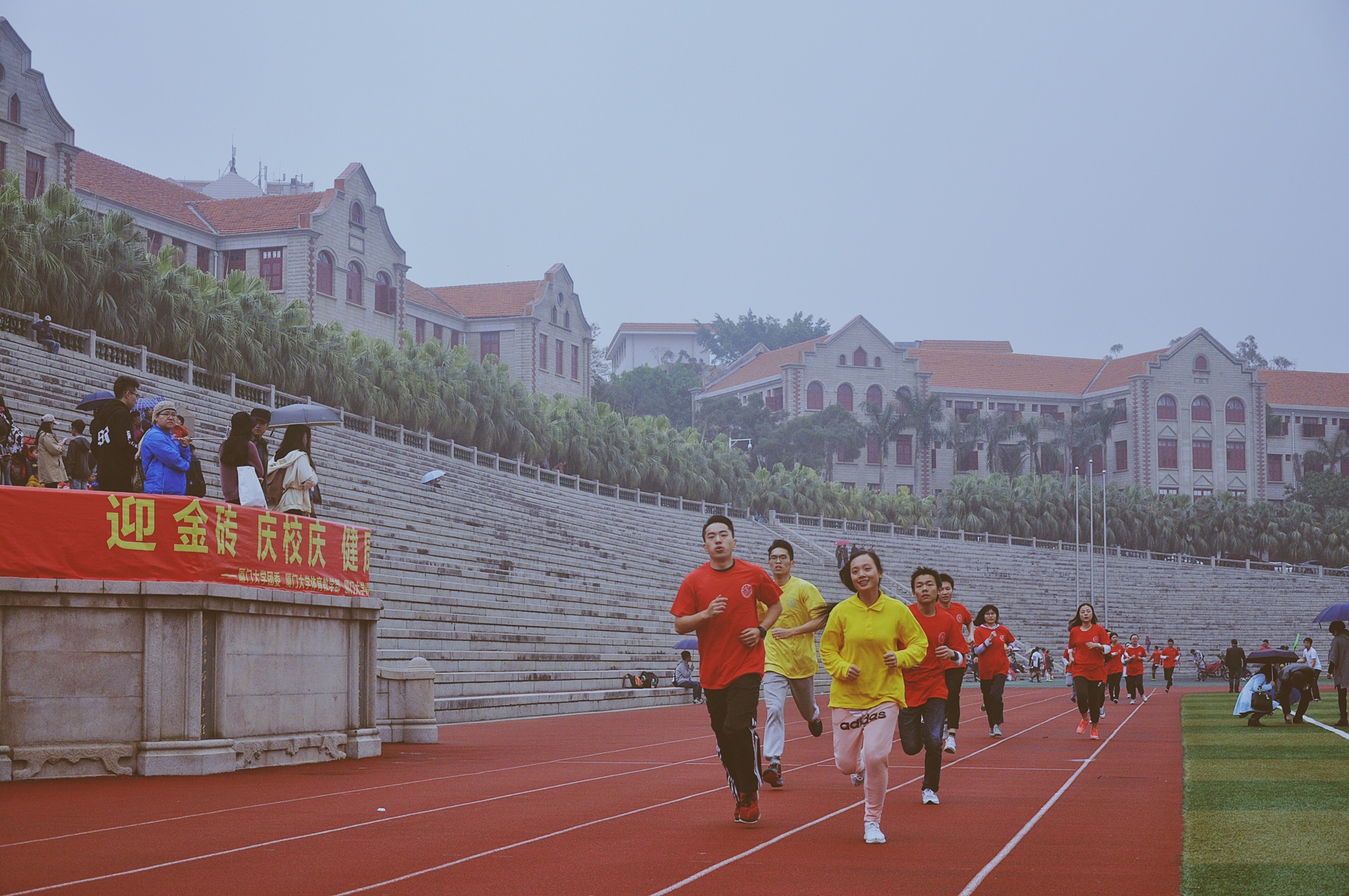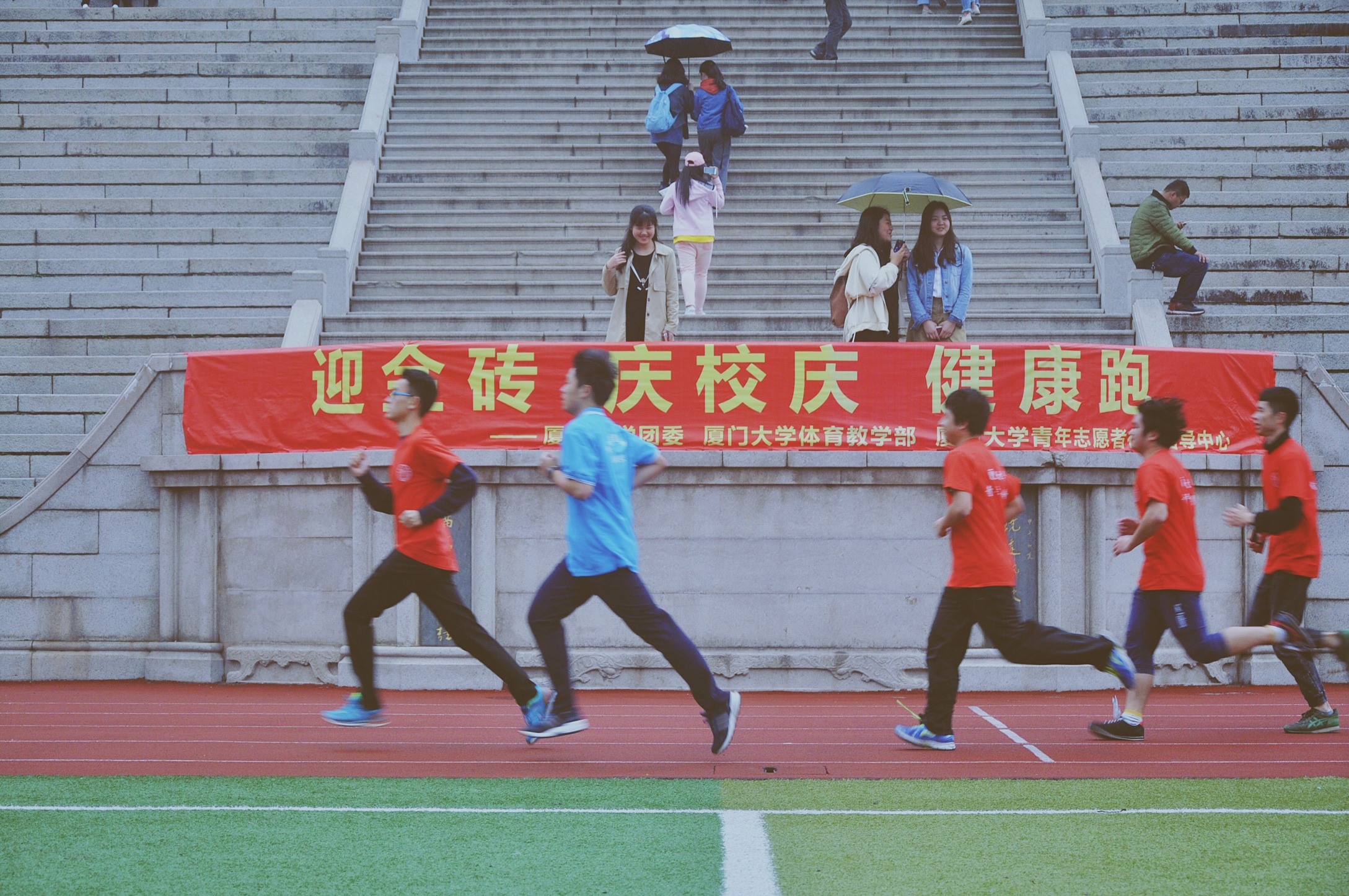 3月25日、26日,厦门会晤志愿者体能测试在思明校区、翔安校区、漳州校区同步进行进行,测试的内容为男子1000米和女子800米计时跑。尽管天公不作美,春雨蒙蒙下,同学们参与的心情丝毫不减弱。“能成为厦门会晤的志愿者是多么幸运的事情啊,所以就算是有台风我也想要过关!”