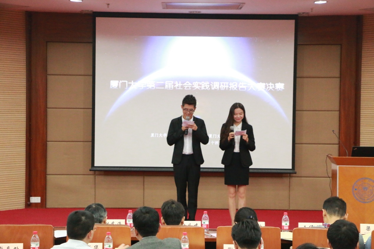 12月14日晚,厦门大学第二届社会实践调研报告大赛决赛在克立楼报告厅顺利举行。本次活动由教务处、校团委与公共事务学院共同举办。经过前期筛选,共有10支队伍入围决赛。现代教育技术与实践训练中心主任、教务处副处长谢火木,学生处副处长陈泗林,校团委姚东明,现代教育技术与实践训练中心刘传尧,公共事务学院党委副书记黄新华、林盛铨出席了本次比赛。学院唐美玲、张庆才、王伟光、林东海及梁丹等五名老师担任本次比赛的评委。本次比赛由欧青松、李沐霏主持。