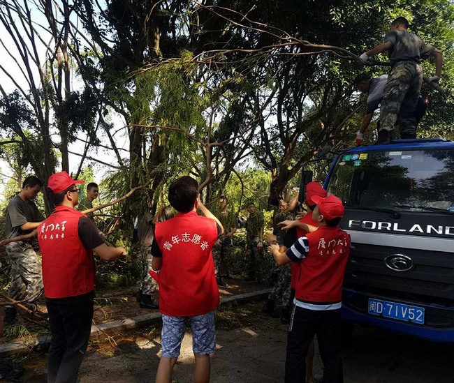 风雨过后,厦大出现了一群戴头盔,塞耳塞的爬树者,他们用攀树课上所学的专业知识,加入校园清理,拯救厦大大树。经初步统计,三个校区有近两万棵树木受到破坏。十几位由厦大攀树队的队员和选修攀树课的学生组成的全副武装的“清道夫”非常引人注目,他们手持油链锯修剪树木,力争最大限度地修护倒枯的树木。