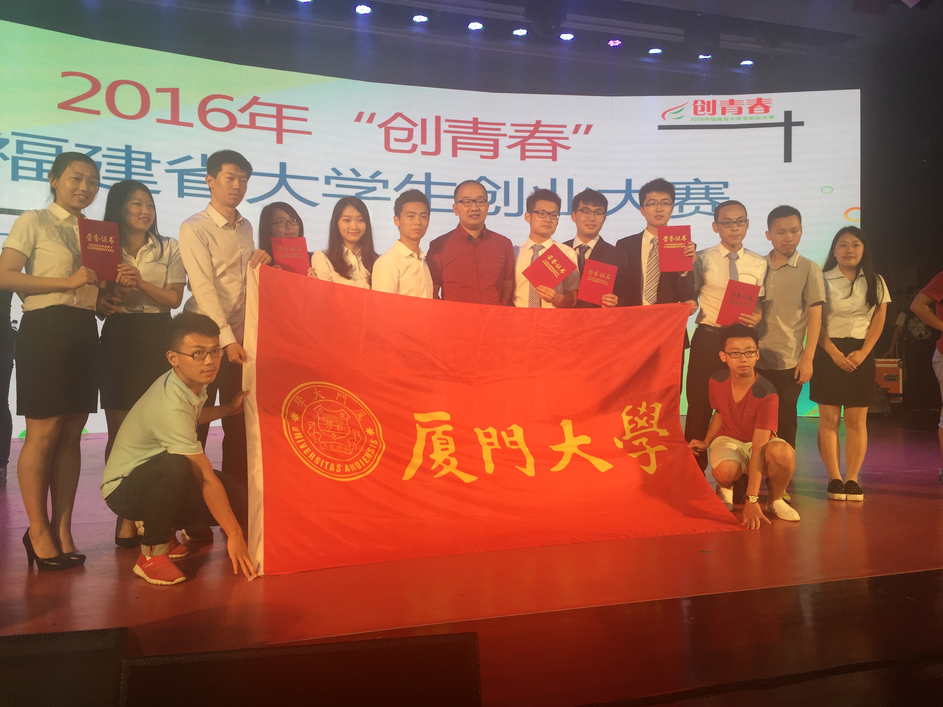 获得金奖的8支团队分别是:依托物理科学与技术学院柳清伙教授科研项目,由物理科学与技术学院2014级硕士生梁添担任负责人的厦门桑德科技有限公司;依托信息科学与技术学院学院黄联芬教授科研项目、由信息科学与技术学院2013级本科生张亮担任负责人的易云尚信息科技有限公司;依托软件学院林俊聪副教授科研项目、由软件学院2013级本科生李秀东担任负责人的爱图科技有限责任公司;依托生命科学学院王震博士的专业技术、由管理学院2014级硕士生林丽容担任负责人的厦门安提海拉生物科技有限公司;依托萨本栋微米纳米科学技术研究院黄辉博士的专利技术,由管理学院2012级本科生蓝一阳担任负责人的厦门知微科技有限公司;由航空航天学院2012级本科生于凯担任负责人的厦门云上晴空文化航科技有限公司;由医学院2014级本科生陈漳鑫担任负责人的医宝贝教育咨询有限公司;由建筑与土木工程学院2013级本科生蒋昱乔担任负责人的支网科技有限公司。