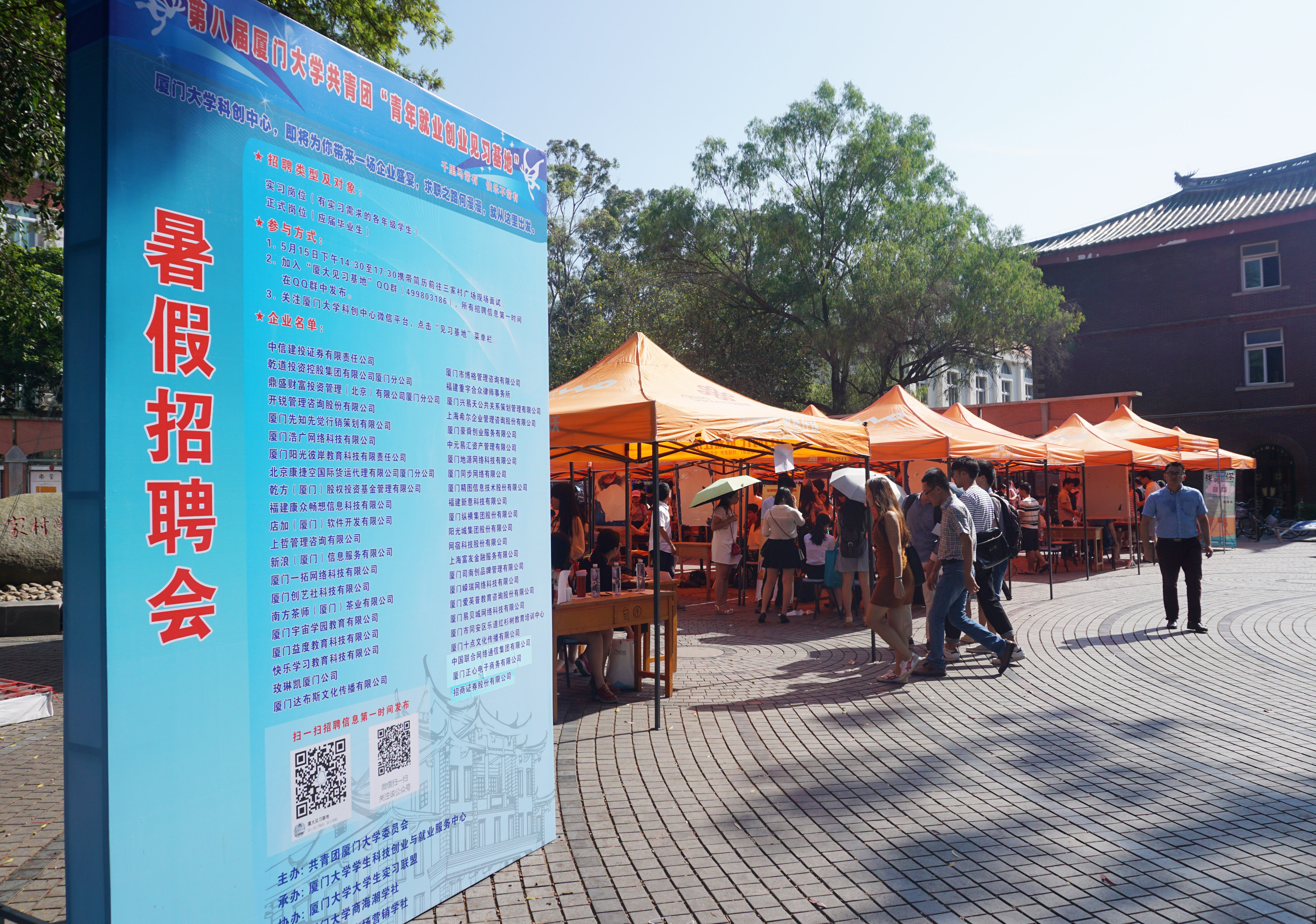 5月15日下午,我校第八届共青团 “青年就业创业见习基地”暑期联合见习招聘会在思明校区三家村广场成功举办。本次招聘会由校团委主办、校学生科技创业与就业服务中心承办,活动旨在搭建校企交流平台,给我校学子提供见习机会,提升就业创业能力。