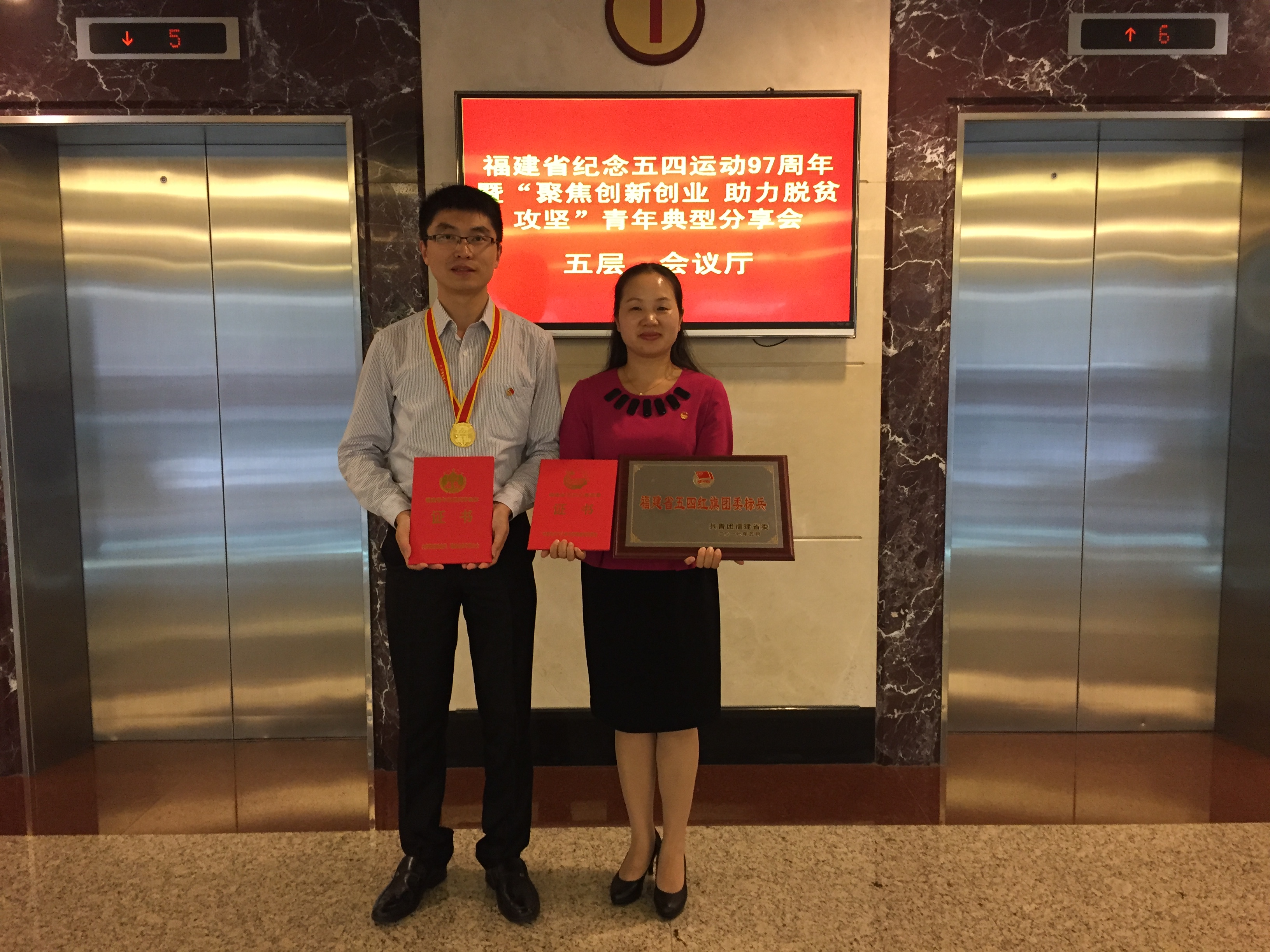 外文学院2012级本科生高昕、嘉庚学院会计与金融学院2013级本科生赵钱获评“福建省优秀共青团员”,信息科学与技术学院团委书记唐腾凤、软件学院团委书记葛学凤获评“福建省优秀共青团干部”。厦门大学2013航空系本科2班团支部、嘉庚学院会计与金融学院2014级会计学团支部获评“福建省五四红旗团支部”。