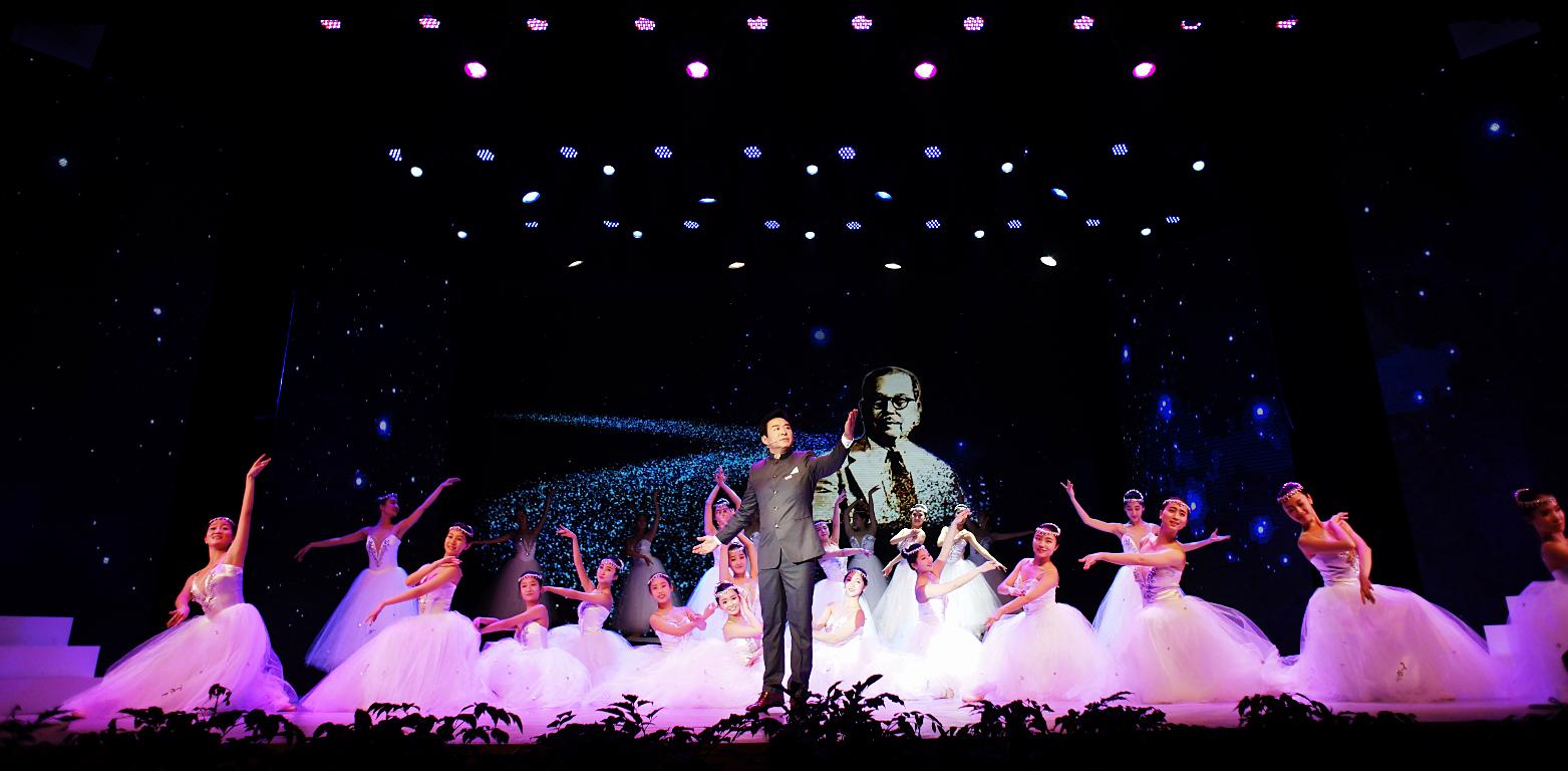 在唯美的舞蹈中,诵读音乐会拉开序幕。艺术学院王虹教授用字正腔圆、浑厚激昂的朗诵,把观众带入无限遐想之中,诵读出广大师生深深缅怀校主陈嘉庚先生的心声,感受到陈嘉庚先生倾资办学无私奉献的华侨精神。从青年陈嘉庚只身前往南洋并开创弘业,但却“心怀祖国,希图报效”,秉承“教育是立国之本,兴学乃国民天职”的信念回国倾资兴学;到嘉庚先生在国家危亡之际毁家纾难,亲赴前线的救国壮举;再到萨本栋校长发扬嘉庚精神,呕心沥血,自强不息,在炮火声中坚持办学的艰辛历程……一幕幕生动情景的再现展示了一位倾资办学、兴学救国的爱国华侨的伟大人格魅力。演员们真情实感的表演、声情并茂的朗诵、低回婉转的音乐、深情含蓄的舞蹈深深地感染了在场观众。、