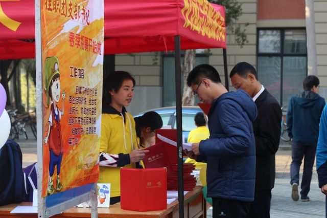 3月5日是学雷锋纪念日,也是中国青年志愿者日,校团委和校青年志愿者协会举行了主题为“一起来做志愿者”的广场活动。