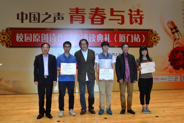 10月24日晚,中央人民广播电台中国之声《青春与诗》校园原创诗作颁奖诵读典礼(厦门站)在我校科学艺术中心报告厅举行。校党委书记张彦、校党委副书记林东伟,中央人民广播电台副总编辑史敏,本次大赛评委和我校相关部门负责人一起为获奖者颁奖。