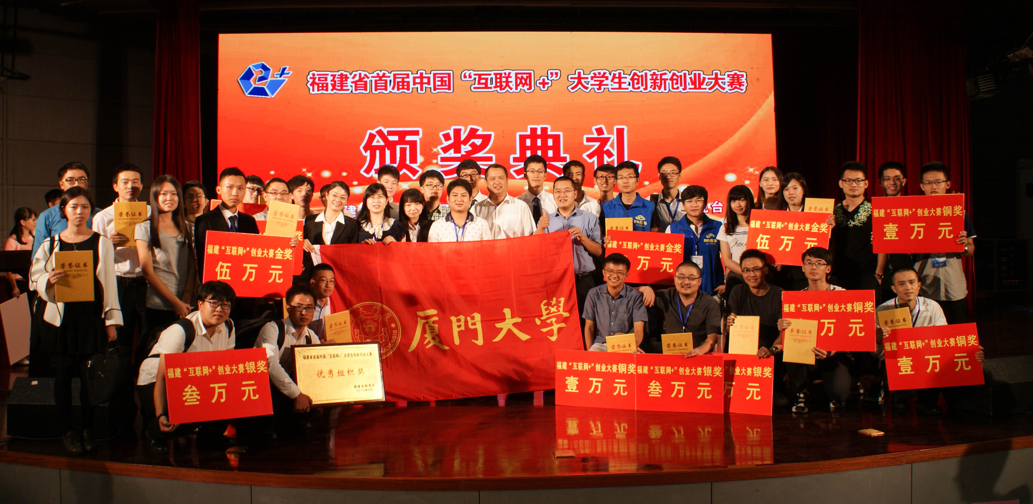 教育部今年组织开展首届全国 “互联网+”大学生创新创业大赛,分为校赛、省赛、国赛三个阶段。大赛要求参赛作品能够将移动互联网、云计算、大数据、物联网等新一代信息技术与行业产业紧密结合,培育产生基于互联网的新产品、新服务、新业态、新模式,以及推动互联网与教育、医疗、社区等深度融合的公共服务创新。我校高度重视本届赛事,成立厦门大学“互联网+”学生创新创业大赛竞赛组织委员会,由朱崇实校长担任主任,林东伟副书记、邬大光副校长担任副主任,校团委、学生工作部(处)、研究生院、教务处、财务处、科技处、社科处、现代教育技术与实践训练中心、资产经营公司负责人担任成员,负责大赛的组织实施,校团委具体负责大赛日常工作。同时,设立厦门大学“互联网+”学生创新创业大赛竞赛专家委员会,由竞赛组委会邀请行业企业、创投风投机构、高校和科研院所专家组成,负责参赛项目的评审工作和省赛、国赛的作品推荐指导工作,为大赛获得佳绩奠定了坚实基础。