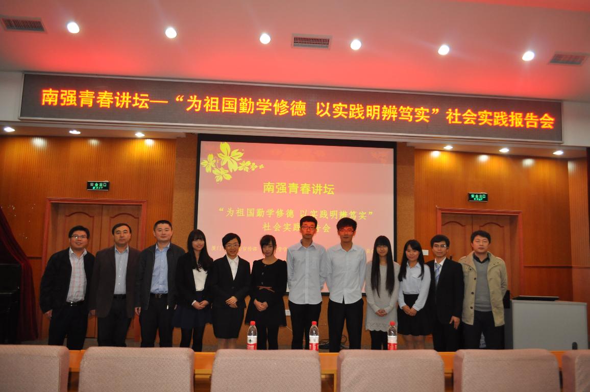2014年的暑假,对我校800多支实践队的队员来说,注定是难忘的。他们或深入基层开展调研、或深入西部地区开展支教服务,或行走于工厂企业开展专业实习……足迹遍布全国。2014年12月3日晚,“南强青春讲坛”社会实践专场报告会在化学报告厅顺利举行,来自不同学院的6组优秀实践团队通过现场展示,诠释了我校青年学生对于社会实践的理解,分享实践中的付出和收获。