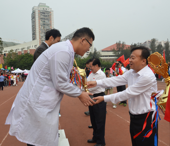校领导为2013-2014全年度体育总竞赛前三名及体育工作先进单位和组织进步奖获奖学院颁奖。其中,管理学院、经济学院和化学化工学院获得2013-2014学年体育总竞赛前三名。7个学院被评为体育工作先进学院,分别是管理学院、经济学院、医学院、化学化工学院、物理与机电工程学院、法学院、人文学院和信息科学与技术学院。而组织进步奖的获奖者则是数学科学学院、国际关系学院/南洋研究院、医学院、法学院、新闻传播学院、马克思主义学院。