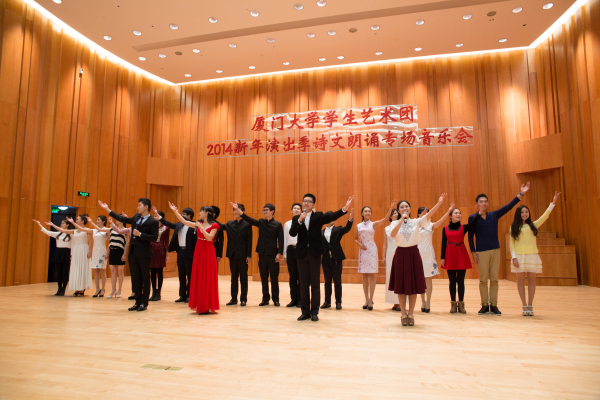 12月16日,厦门大学学生艺术团2014新年演出季第二场——诗文朗诵专场在艺术学院音乐厅举行,由艺术团主持人队的同学参与演出。