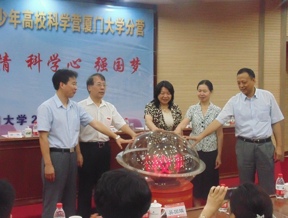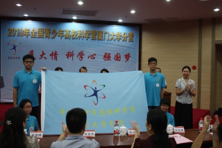 接着,与会领导共同启动了2013年全国青少年高校科学营厦门大学分营,李金莲巡视员为2013年全国青少年高校科学营厦门大学分营授旗,全场气氛推向最高潮。