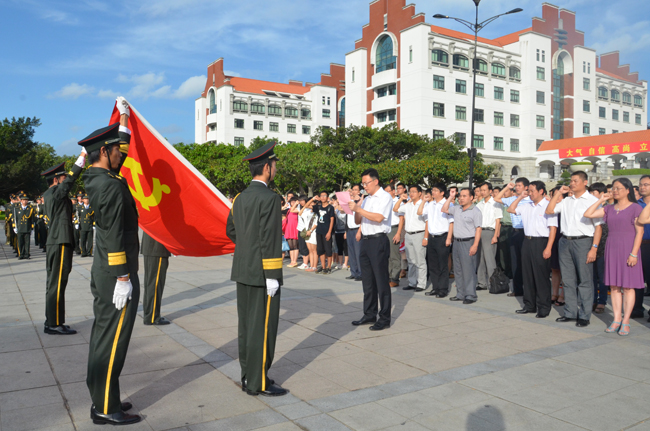 在中国共产党成立92周年和我校第十次党代会胜利召开之际,7月1日上午7点,迎着朝阳,我校举行“七一升国旗 重温入党誓词”仪式,以此激励党员师生奋发有为,为实现学校“双百”目标奋勇前进。校团委书记陈怀锋主持仪式。