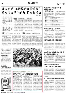 1月8日,《光明日报》第六版“教科新闻”刊发题为“倾听学生心声,解决实际问题”的新闻,报道我校长期以来关爱学生、帮助学生解决实际问题的传统和做法。