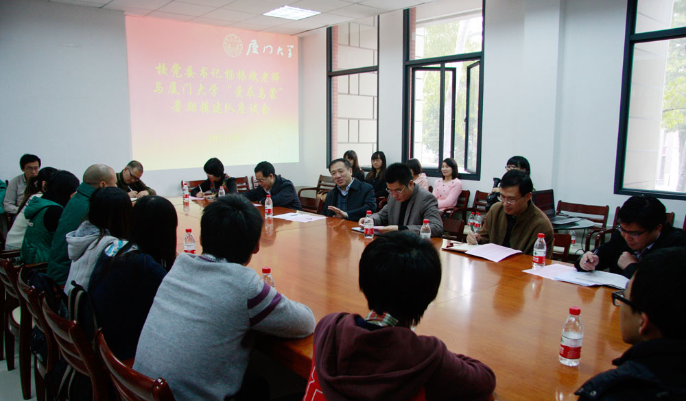 12月27日上午,校党委书记杨振斌同志在自钦楼二楼会议室与我校“爱在乌蒙”暑期援建队队员亲切座谈,向援建队表示感谢,希望队员们继续从身边小事做起,将爱心与责任心发扬光大,同时希望援建队的言行与精神能感召更多的厦大学生践行志愿服务精神,投身志愿服务活动。