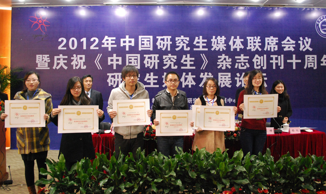 第一届“中国研究生媒体联席会议”于2005年在北京召开,迄今已成功召开八届。2012年中国研究生媒体联席会议“优秀研究生校园媒体”系列奖项的评选活动,由评委会和参会媒体共同评选出获奖媒体。此次活动旨在探索研究生校园媒体的评价标准,以评促建,树立榜样,从而推进研究生校园媒体整体水平的提升。本次会议上,《凌云报》获得了其他参会高校代表的高度赞赏,也收获了很多经验。