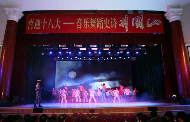 由我校对口合作高校井冈山大学师生自编自导自演的大型音乐舞蹈史诗《井冈山》10月19日晚在我校建南大会堂精彩上演,演出是我校喜迎党的十八大胜利召开的重要内容。我校党委书记杨振斌、井冈山大学校长张泰城,副校长曾建平、吕玉华,我校党委常委、组织部部长白锡能出席。两校相关部门和学院负责人、我校全体国防生、各学院师生代表同集美大学、厦门理工学院、厦门大学嘉庚学院、厦门医学高等专科学校等师生代表共3000余人一同观看了演出。