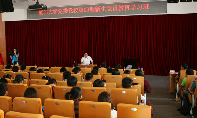 杨振斌从厦门大学历史、大学的学习、大学生的思想成长以及如何看待学生党员成长中的一些问题等方面给新生党员做了一场生动活泼、富有启发教育意义的报告。