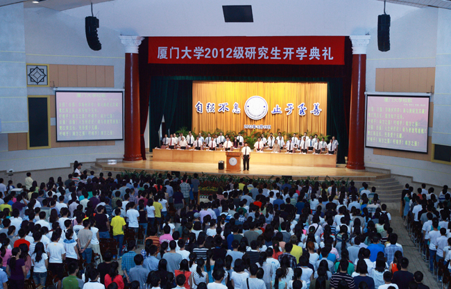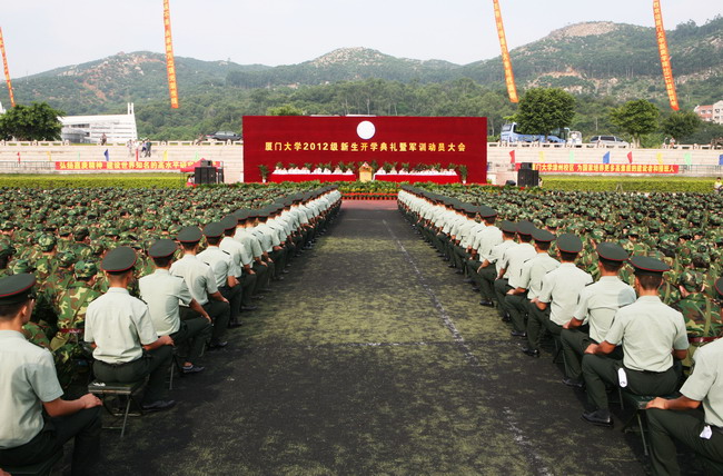 9月19日和21日,2012级新生开学典礼分别在建南大会堂和漳州校区田径场隆重举行。本科生军训承训部队领导、厦门警备区领导、校党委书记杨振斌,校长朱崇实,党委副书记陈力文、陈国凤,副校长李建发、赖虹凯,中科院院士黄本立,校党委常委、组织部部长白锡能,校长助理韩景义、叶世满、李初环,南京军区驻厦大选培办主任黄平,嘉庚学院院长王瑞芳,党委常务副书记鲁同安,以及学校各机关部处负责人,各学院(研究生院)党政领导、师生员工代表和全体新生出席典礼。副校长孙世刚、邬大光分别主持典礼。