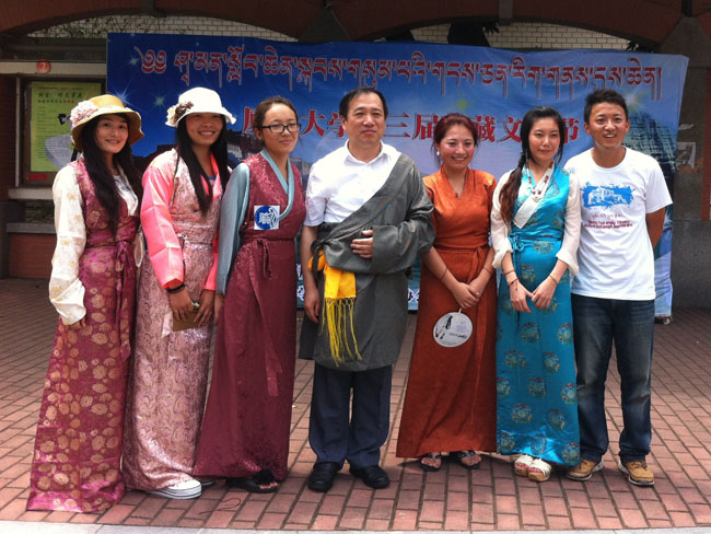 杨振斌还与同学们一起欣赏了开幕式的文艺表演,并现场清唱了一曲《再唱山歌给党听》,浑厚而充满情感的歌声表达了他对西藏文化的热爱与深情。文艺表演的节目全部由西藏文化交流协会的同学们准备,表演中,藏族同学们身着斑斓美丽的藏服,饱含深情,或随节奏翩然舞动,或伴气氛引吭高歌,向观众们展现了多才多艺、积极向上的藏族青年气息,也向大家传达了内心的激昂与感动。表演现场,一位来自我校教师合唱队的老师主动上台为同学们献唱,一曲藏语版的《北京的金山上》情真意切。“每次看到有关于西藏的活动,我都情不自禁想参加”,这位老师对西藏的感情深深感染了同学们。