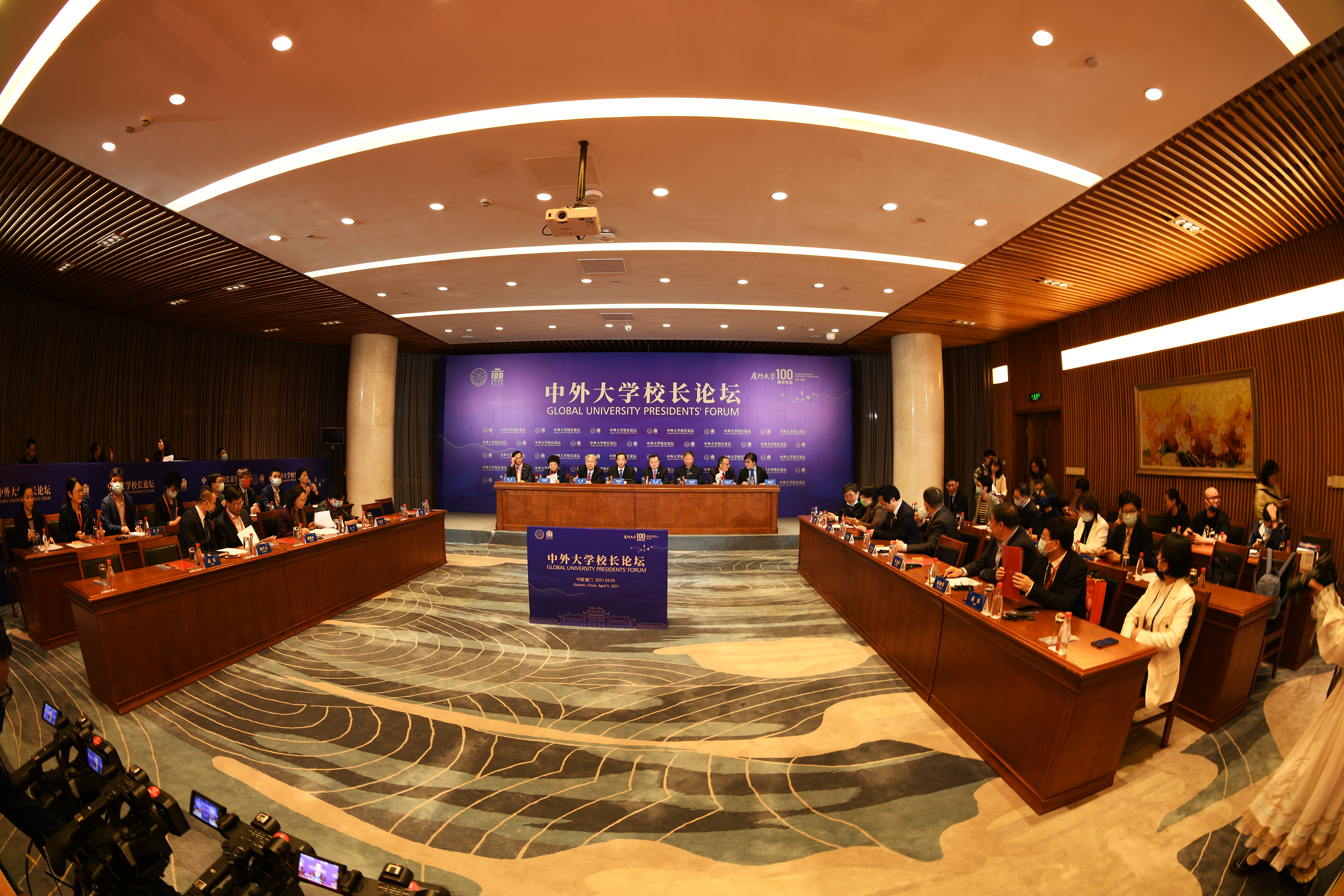 4月5日, 在庆祝厦门大学建校100周年之际,“中外大学校长论坛”以线上线下相结合的方式在科学艺术中心举行。来自全球21个国家及地区近50所高校校长及其代表们参会,共话友情,共谋发展。福建省人民政府副省长李德金,中国科学院院士、南京大学校长吕建,山东大学校长樊丽明,中国科学院院士、兰州大学校长严纯华,澳门大学校长宋永华,中国科学院院士、上海交通大学常务副校长丁奎岭,中国科学院院士、西北工业大学校务委员会副主任、校学术委员会主任黄维,中国石油大学校长吴小林,厦门大学校长张荣,中国科学院院士、厦门大学近海海洋环境科学国家重点实验室主任戴民汉教授等莅临主会场。厦门大学副校长杨斌主持论坛。