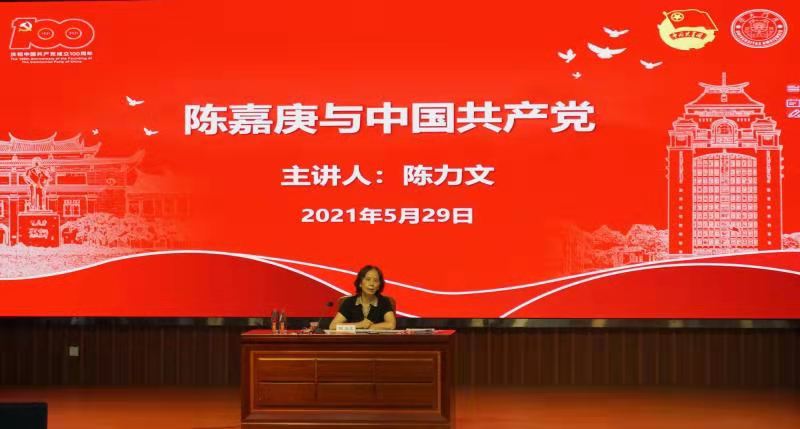 陈老师用一个半小时的时间,带领大家回顾了一位爱国华侨和一个伟大政党的不解之缘,重温了校主陈嘉庚先生与中国共产党之间的亲密关系和深厚友谊,以及其为国为民奋斗的传奇人生。