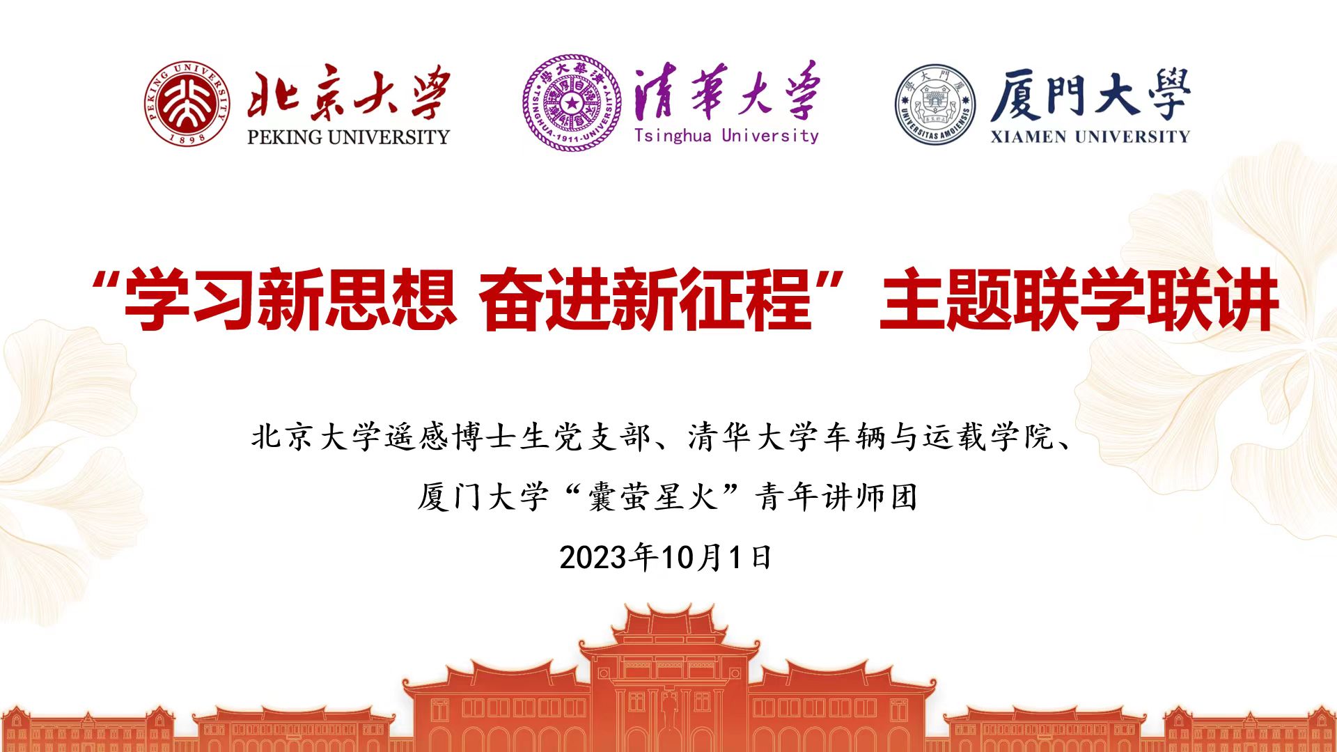 为持续深入学习贯彻习近平新时代中国特色社会主义思想,全面学习宣传贯彻党的二十大精神,结合团员和青年主题教育相关部署,10月1日,厦门大学“囊萤星火”青年讲师团联合北京大学遥感博士生党支部、清华大学车辆与运载学院车辆博21党支部、车辆博22党支部、车辆博23党支部开展了“学习新思想 奋进新征程”主题联学联讲活动,分享主题教育成果,推动党建工作与事业发展深度融合。