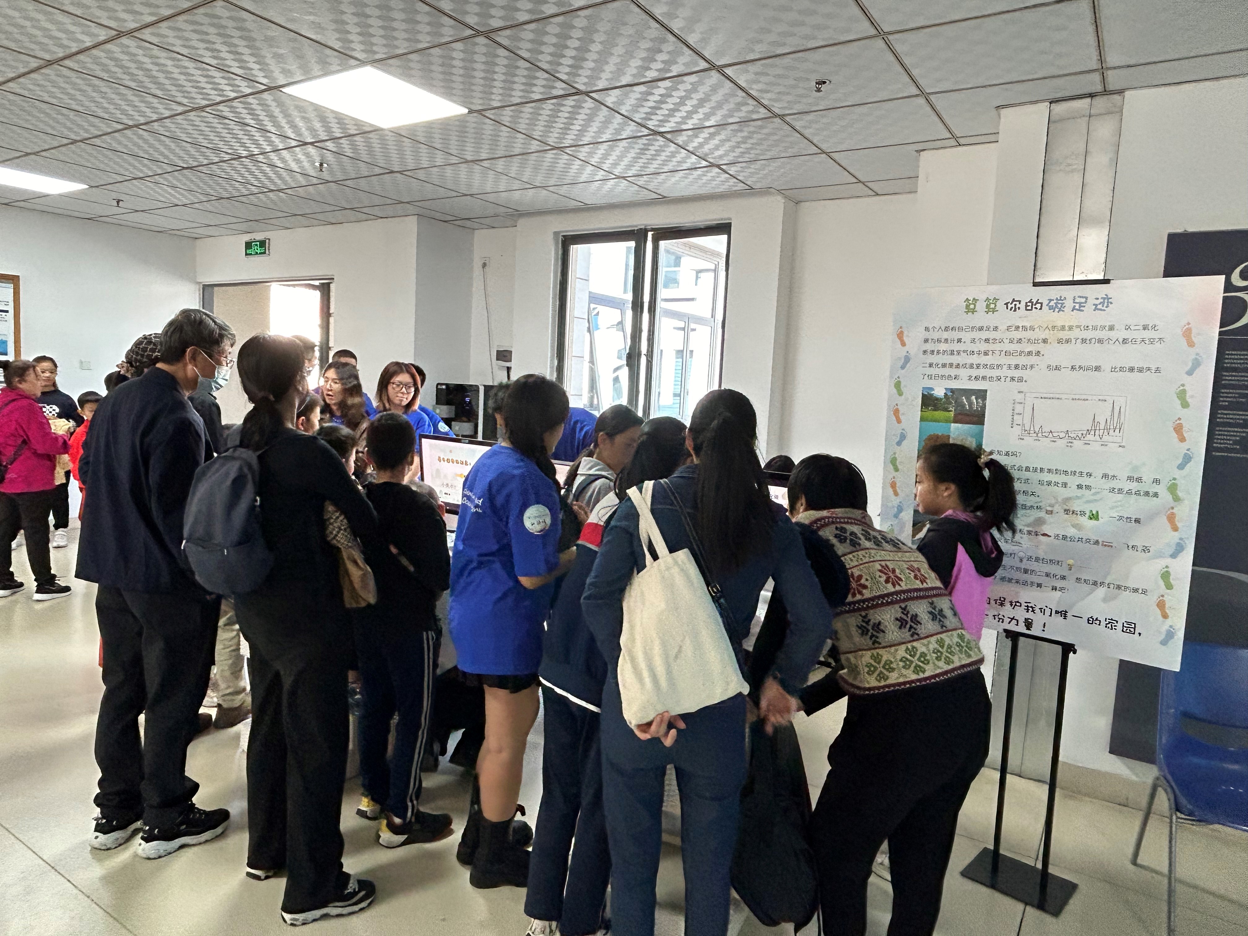 IME2班团支部设置了“碳足迹及厦门湾垃圾轨迹模拟”展位,向参访者展示了日常生活中的碳足迹。