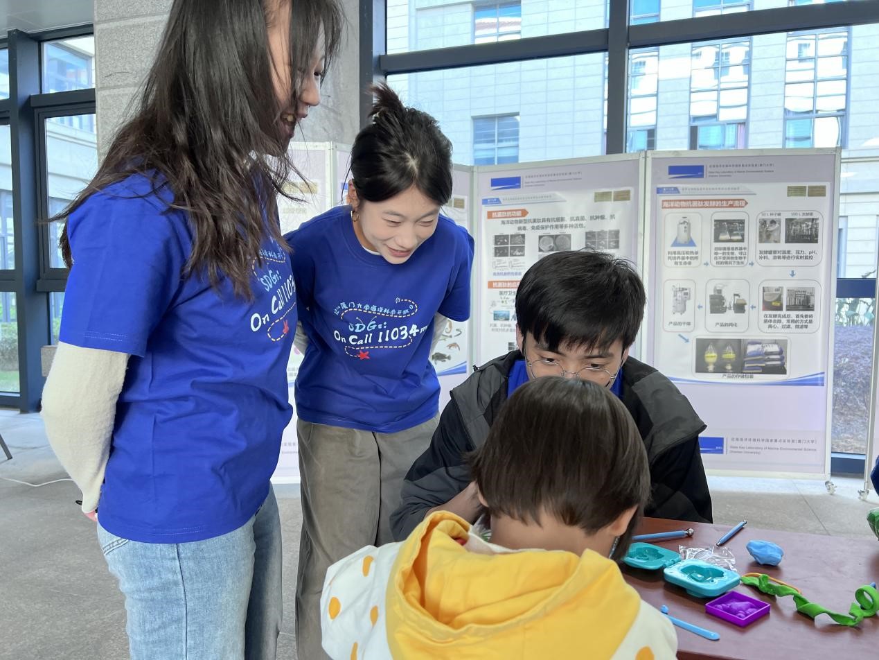 IME1班团支部的团员青年志愿者参与了“海洋生物分类”等多个展位,向参访者进行了海洋生物分类科普,并积极组织中小学生一起体验海洋脸谱彩绘。