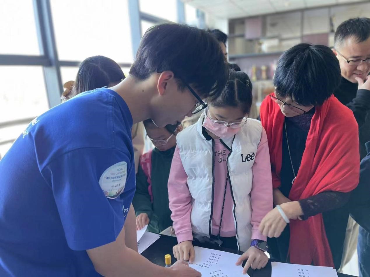 国重3班团支部的团员青年志愿者负责“探索海洋抗菌肽的神奇力量”展位,向参访者介绍了抗菌肽的作用、细菌的多样性及二者的关系。通过超轻黏土、细菌拼图等趣味小游戏,参访者增进了对海洋生物的了解。在此基础上,参访者还对模式生物斑马鱼及丰年虫进行细致观察和深入了解。