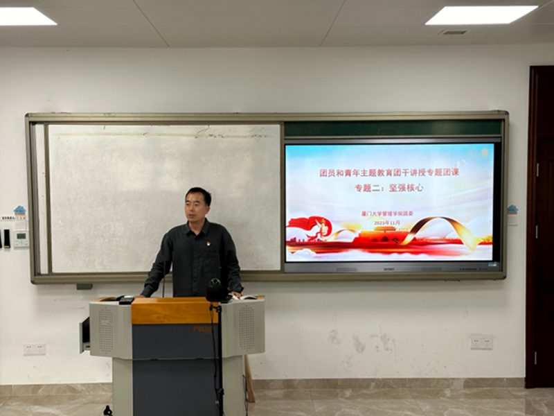 为学习贯彻习近平新时代中国特色社会主义思想,管理学院深入开展团员和青年主题教育,扎实落实团干讲授专题团课要求。11月10日下午,管理学院团委副书记揭上锋在嘉庚二111向2023级管理科学与工程硕士团支部和2023级财会院硕士团支部讲授题为“深化党的政治建设认识,做一名合格共青团员”的主题团课。揭上锋带领团员青年们读原著、学原文,与学习工作实际相结合,深刻学习领会党的理论和路线方针政策。